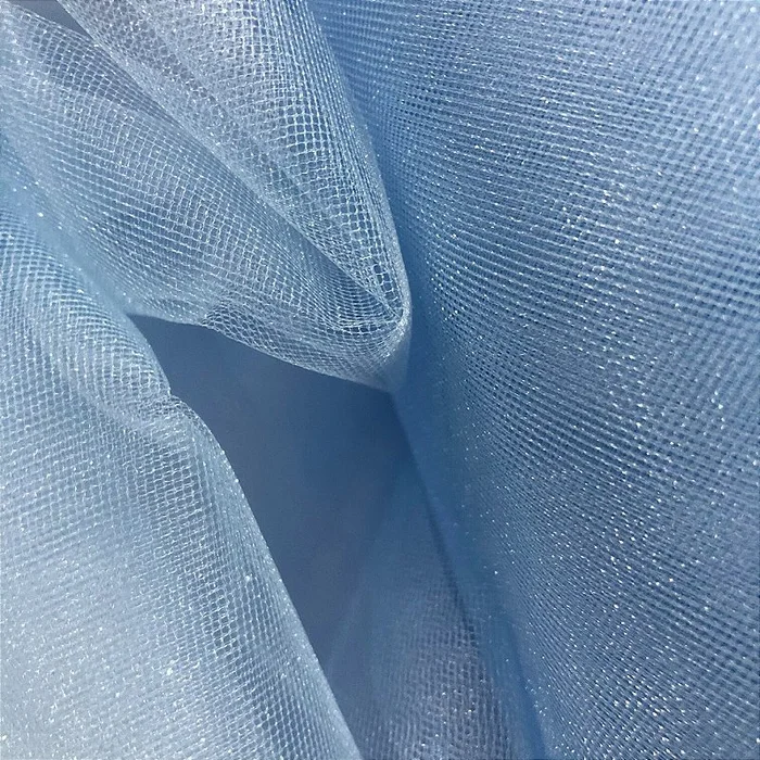 Tecido Tule com Brilho - Azul Claro - 3,20m de Largura -