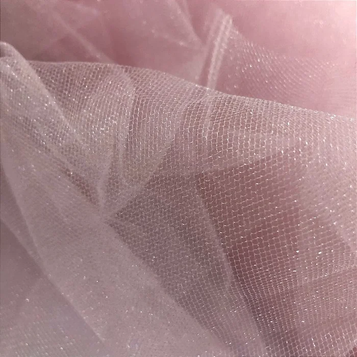 Tecido Tule com Brilho - Rosa Claro - 3,20m de Largura -