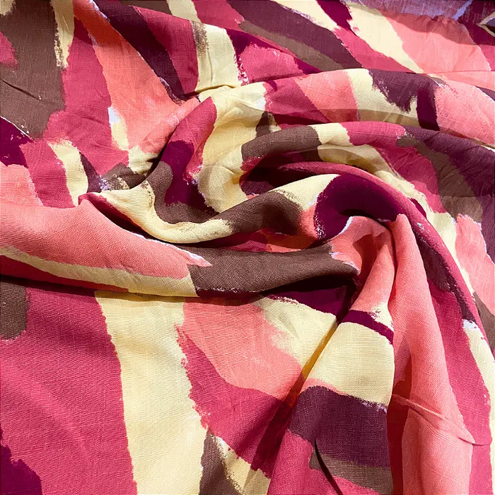 Tecido Viscolinho Estampado - Abstrato Marsala - 1,50m de Largur -
