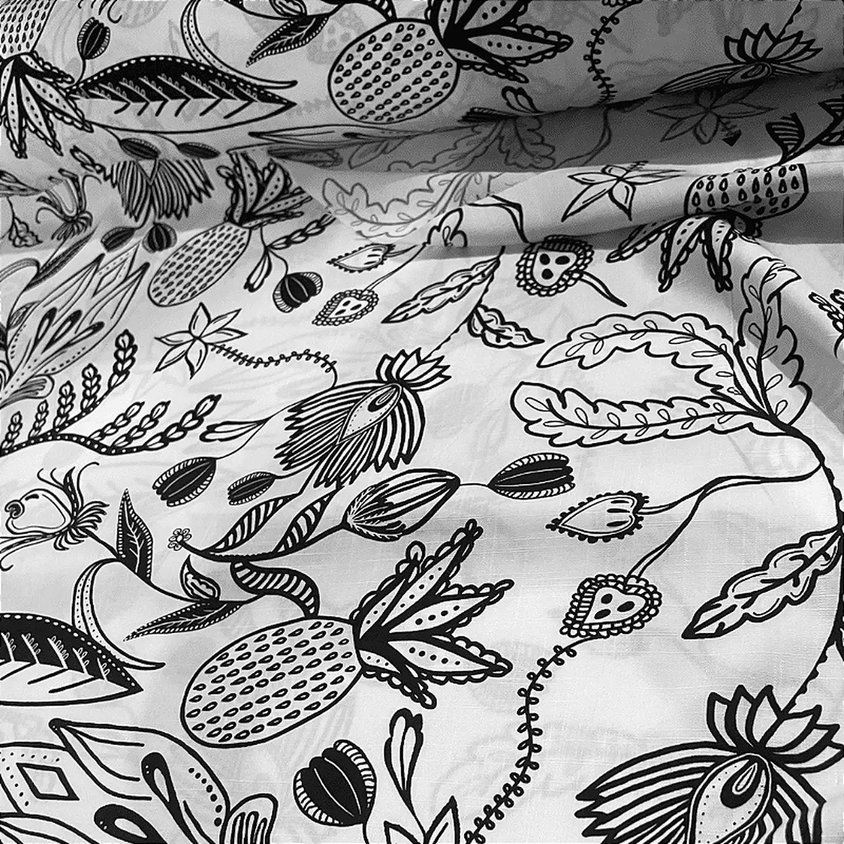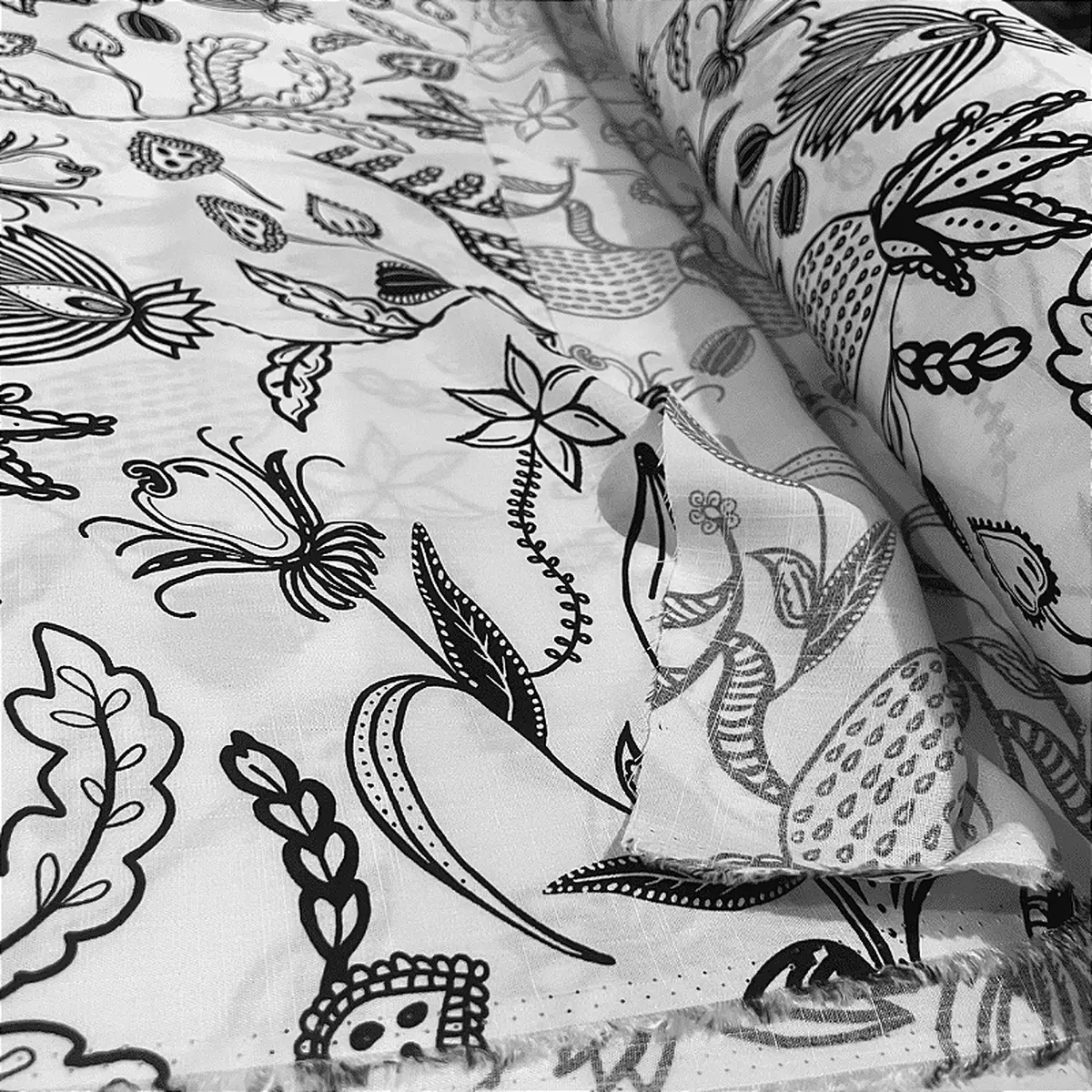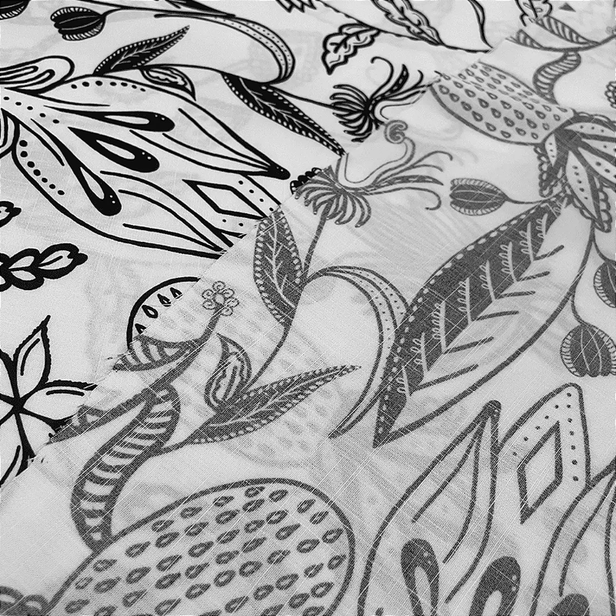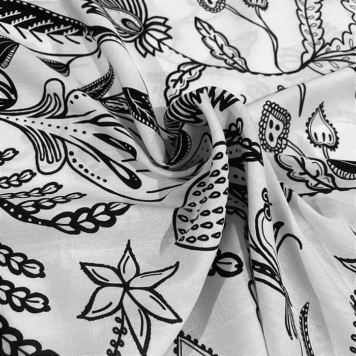 Tecido Viscolinho Estampado - Folhagem Branco - 1,50m de Largura -