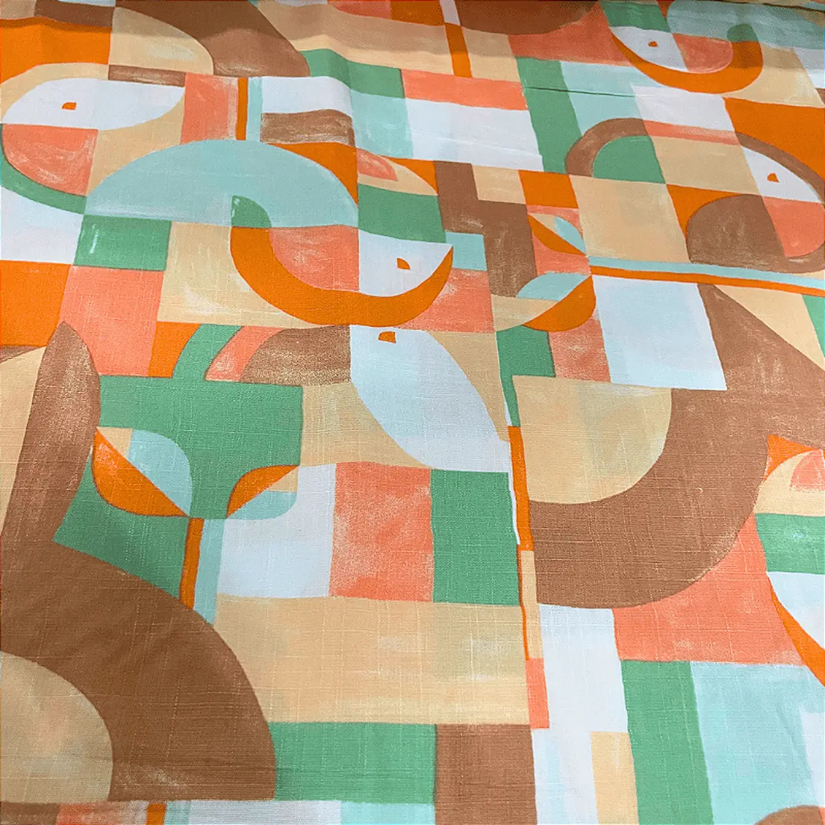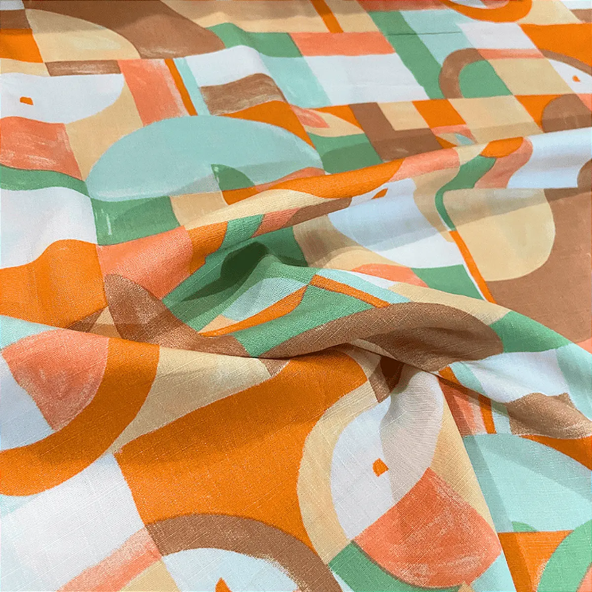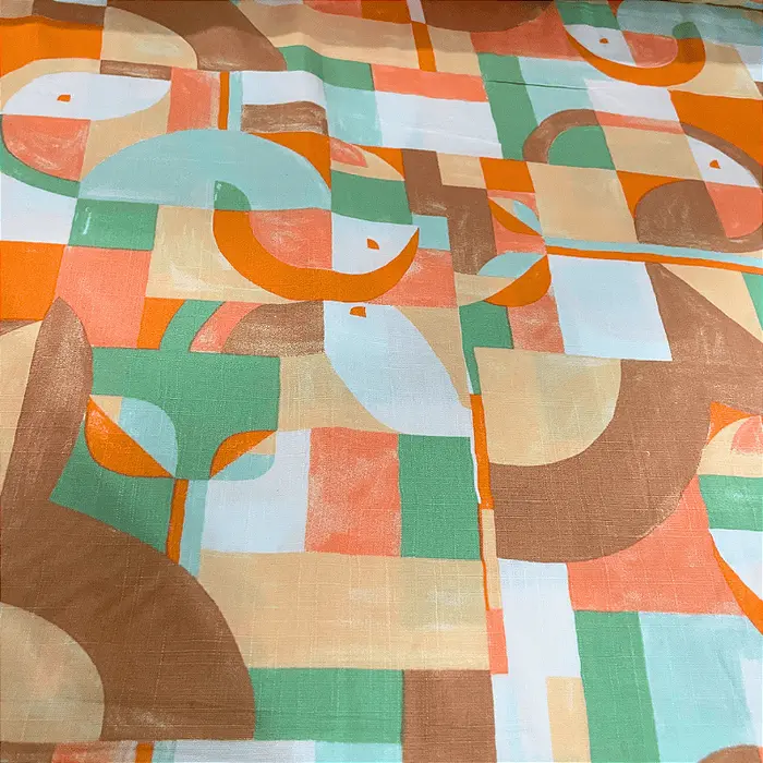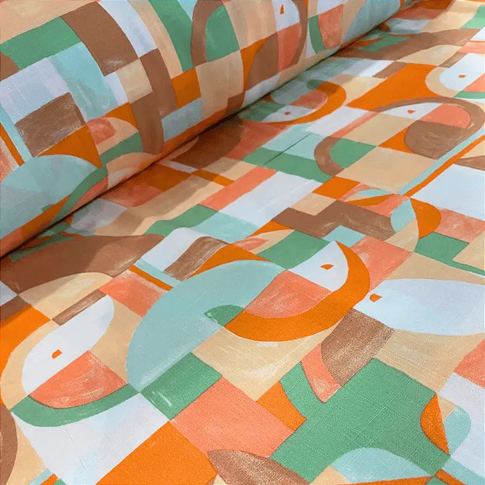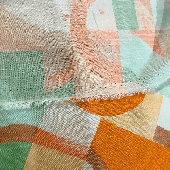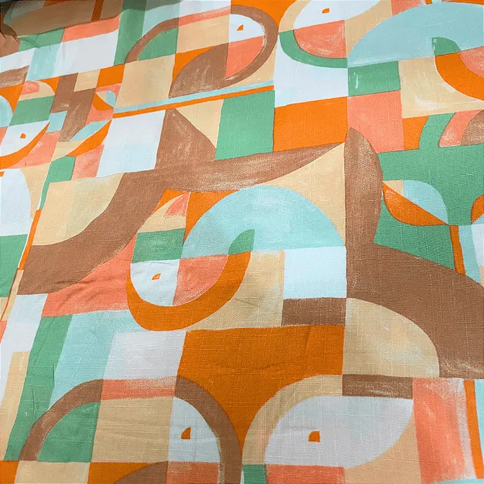 Tecido Viscolinho Estampado - Geométrico Laranjado - 1,50m de Largura | Toque Macio e Caimento Perfeito