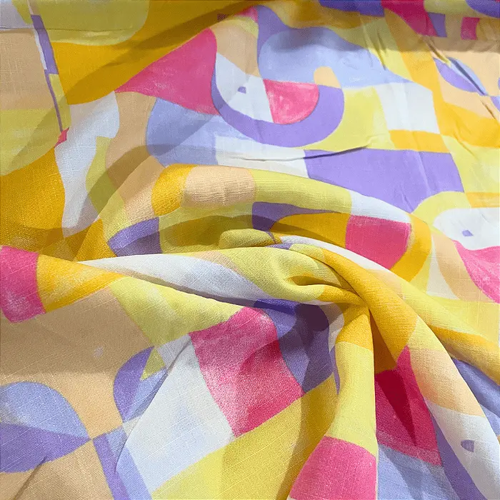 Tecido Viscolinho Estampado - Geométrico Rosado - 1,50m de Largura | Toque Macio e Caimento Perfeito