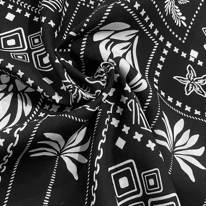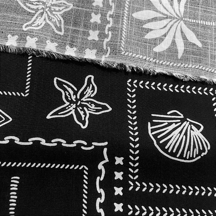 Tecido Viscolinho Estampado - Retrato Folhagem Preto - 1,50m de Largura | Toque Macio e Caimento Perfeito