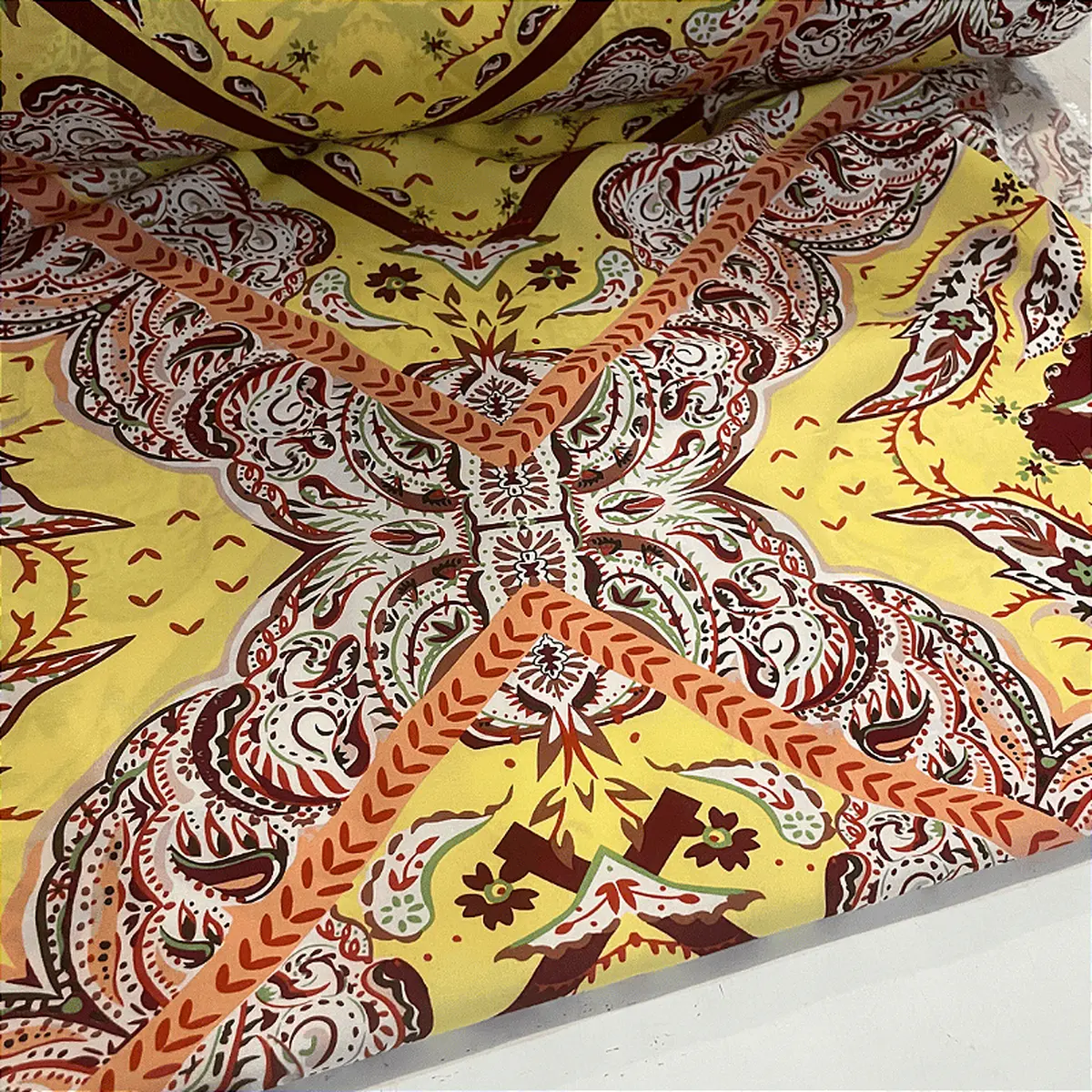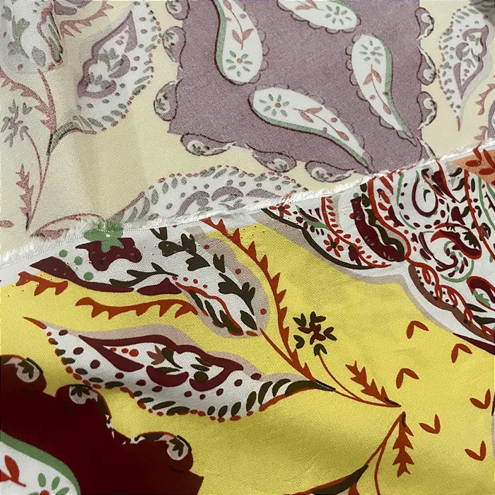 A viscose é a alma da moda casual e versátil. Feita a partir de fibras naturais de celulose, ela combina o melhor de dois mundos: o toque macio e gentil do algodão com um caimento fluido e um balanço que só ela tem. Com sua gramatura leve de 120 g/m², este tecido é incrivelmente respirável, ideal para manter você fresca e confortável mesmo nos dias mais quentes. É a base perfeita para estampas vibrantes que ganham vida com o seu movimento.