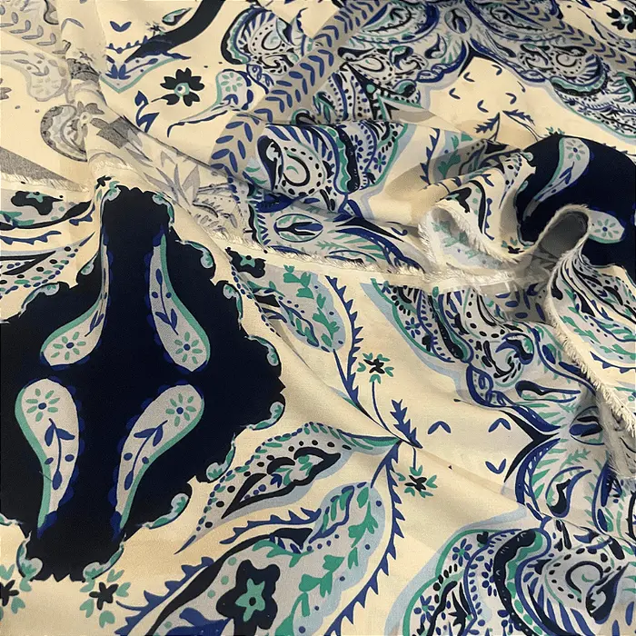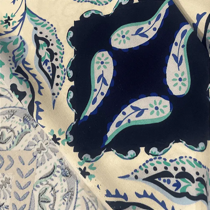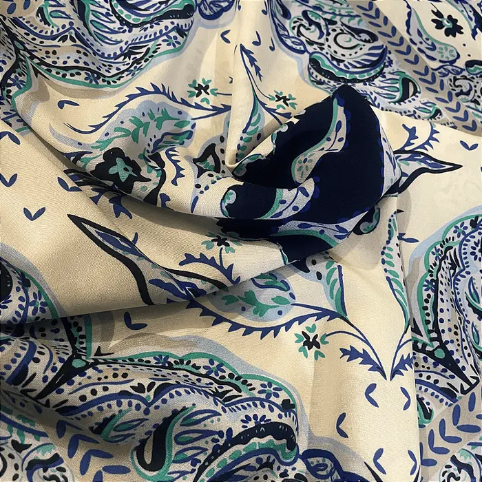 A viscose é a alma da moda casual e versátil. Feita a partir de fibras naturais de celulose, ela combina o melhor de dois mundos: o toque macio e gentil do algodão com um caimento fluido e um balanço que só ela tem. Com sua gramatura leve de 120 g/m², este tecido é incrivelmente respirável, ideal para manter você fresca e confortável mesmo nos dias mais quentes. É a base perfeita para estampas vibrantes que ganham vida com o seu movimento.