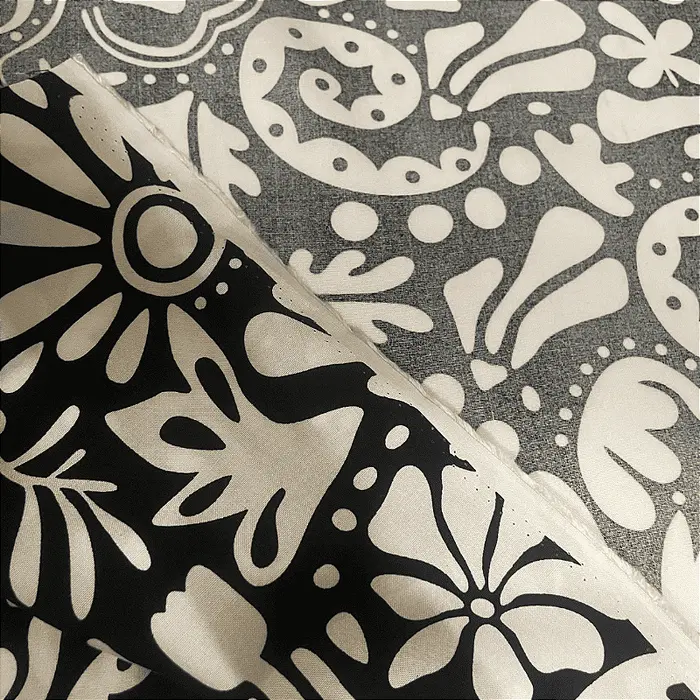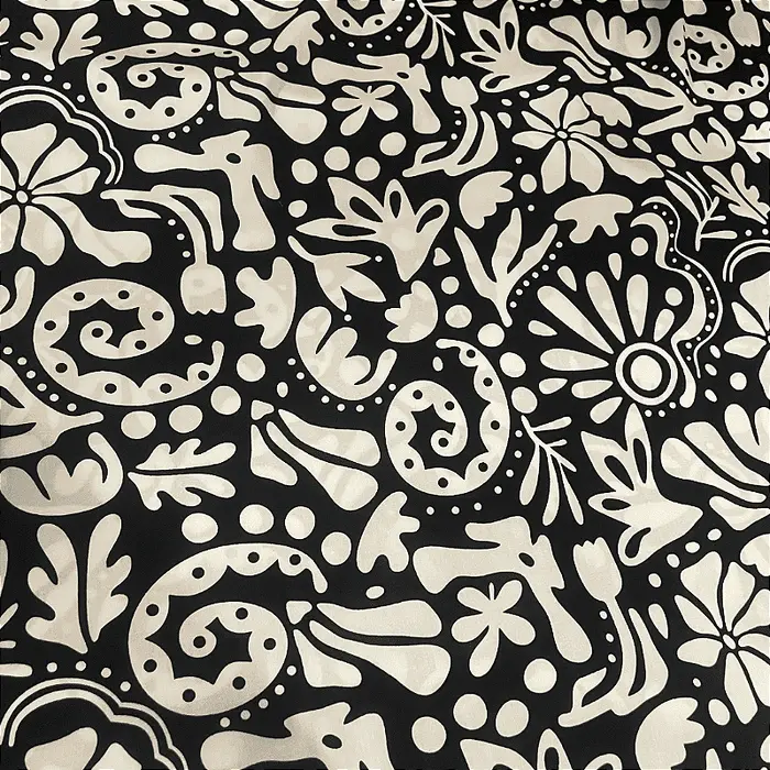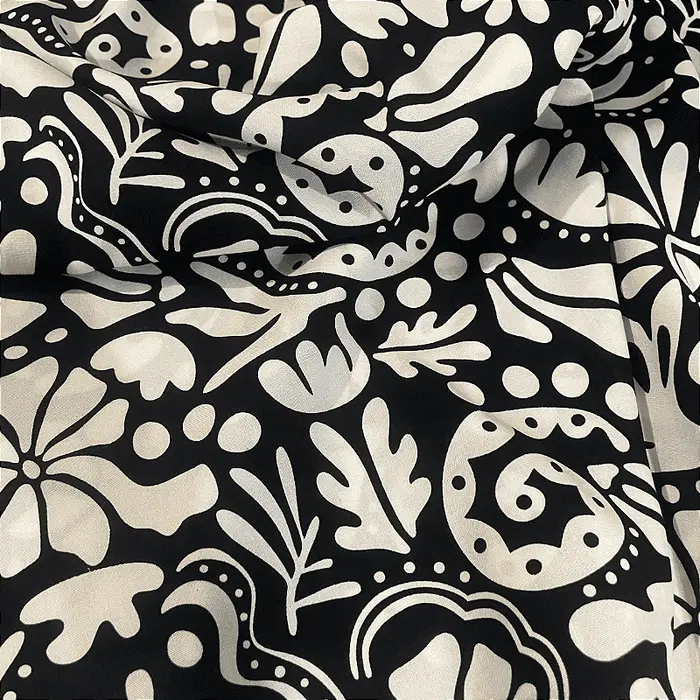 Tecido Viscose Estampada - Floral Abstrato Preto e Branco - 1,47 -