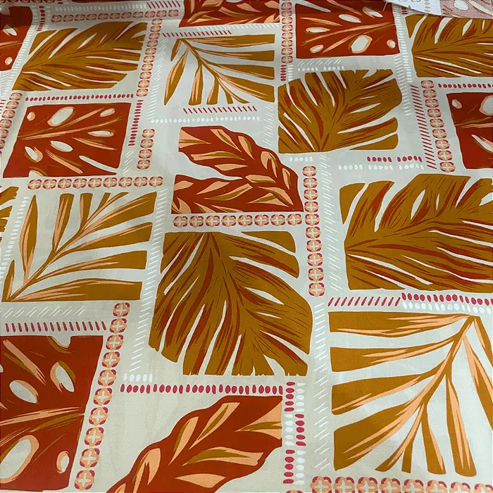 Tecido Viscose Estampada - Folhagem Geométrico - 1,47m de Largur -