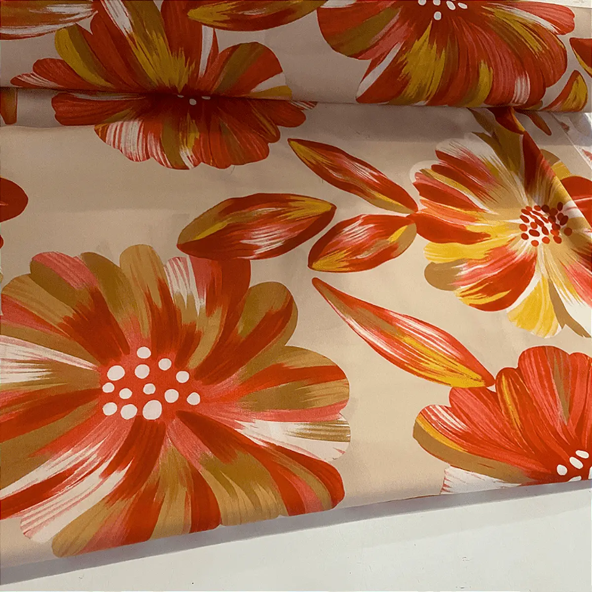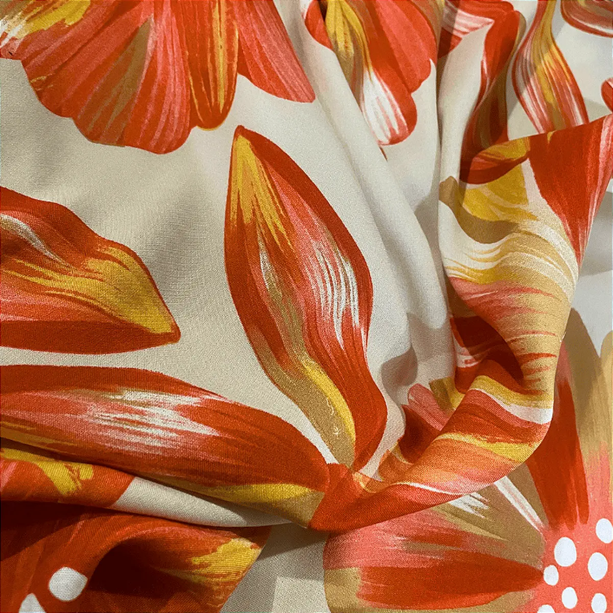 Tecido Viscose Estampada - Margarida Avermelhado - 1,47m de Largura | Leveza, Frescor e Caimento Fluido
