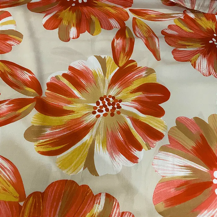 Tecido Viscose Estampada - Margarida Avermelhado - 1,47m de Larg -