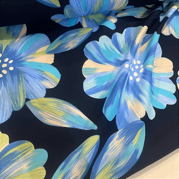 A viscose é a alma da moda casual e versátil. Feita a partir de fibras naturais de celulose, ela combina o melhor de dois mundos: o toque macio e gentil do algodão com um caimento fluido e um balanço que só ela tem. Com sua gramatura leve de 120 g/m², este tecido é incrivelmente respirável, ideal para manter você fresca e confortável mesmo nos dias mais quentes. É a base perfeita para estampas vibrantes que ganham vida com o seu movimento.