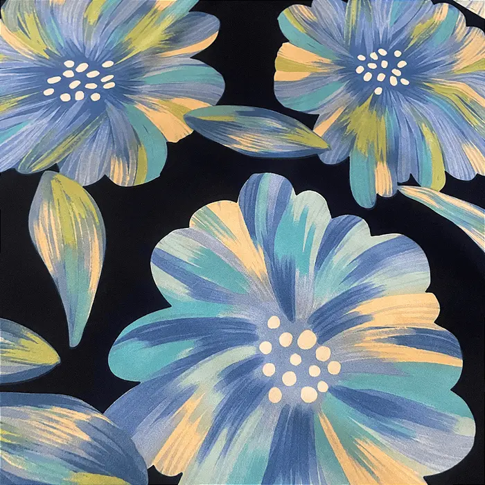 Tecido Viscose Estampada - Margarida Azul - 1,47m de Largura | L -