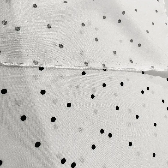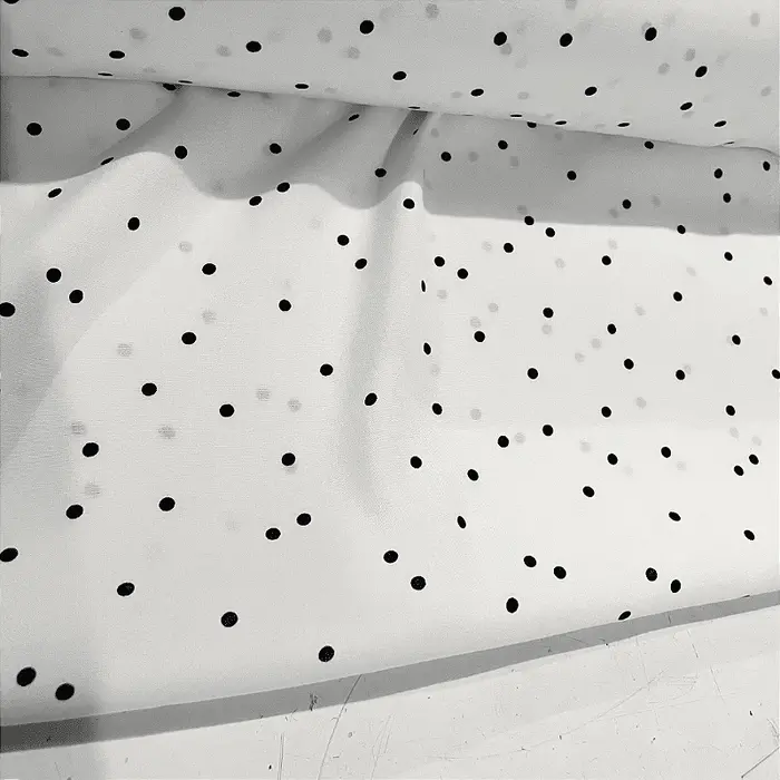 Tecido Viscose Estampada - Poá Preto Fundo Branco - 1,47m de Lar -