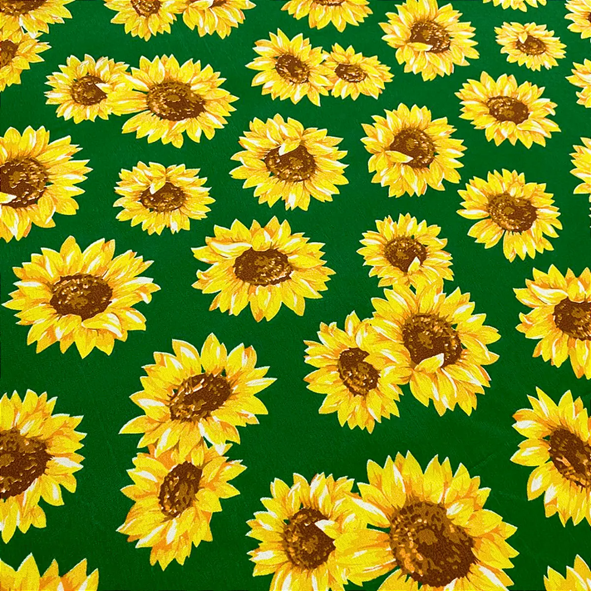 Tricoline Estampado 100% Poliéster - Girassol Fundo Verde - 1,50 -