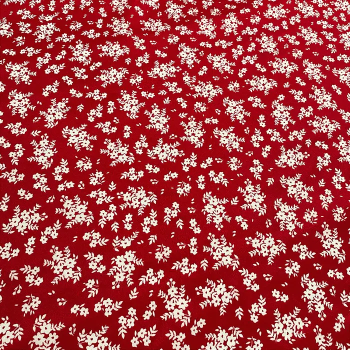Tricoline Estampado 100% Poliéster - Ramagem Fundo Vermelho - 1, -