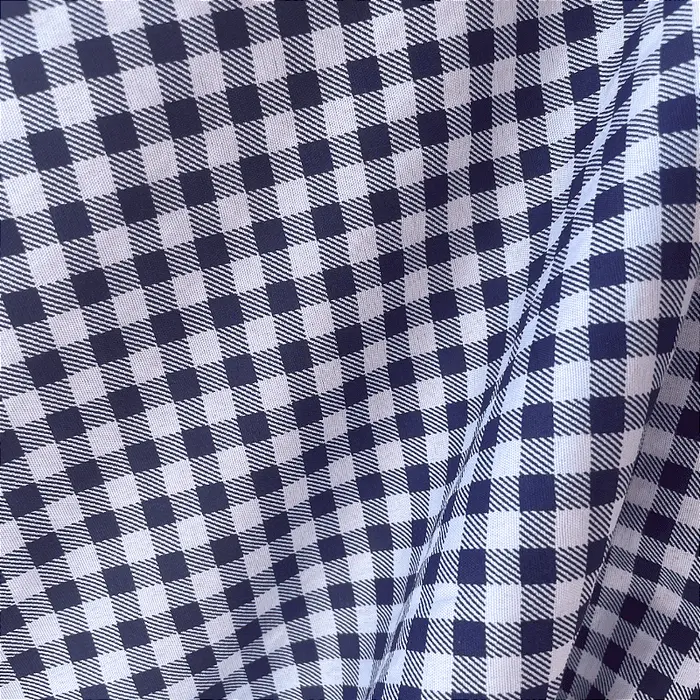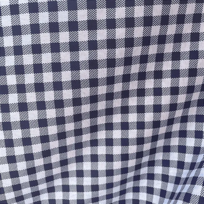 Tricoline Estampado 100% Poliéster - Xadrez Azul Marinho 7mm - 1 -