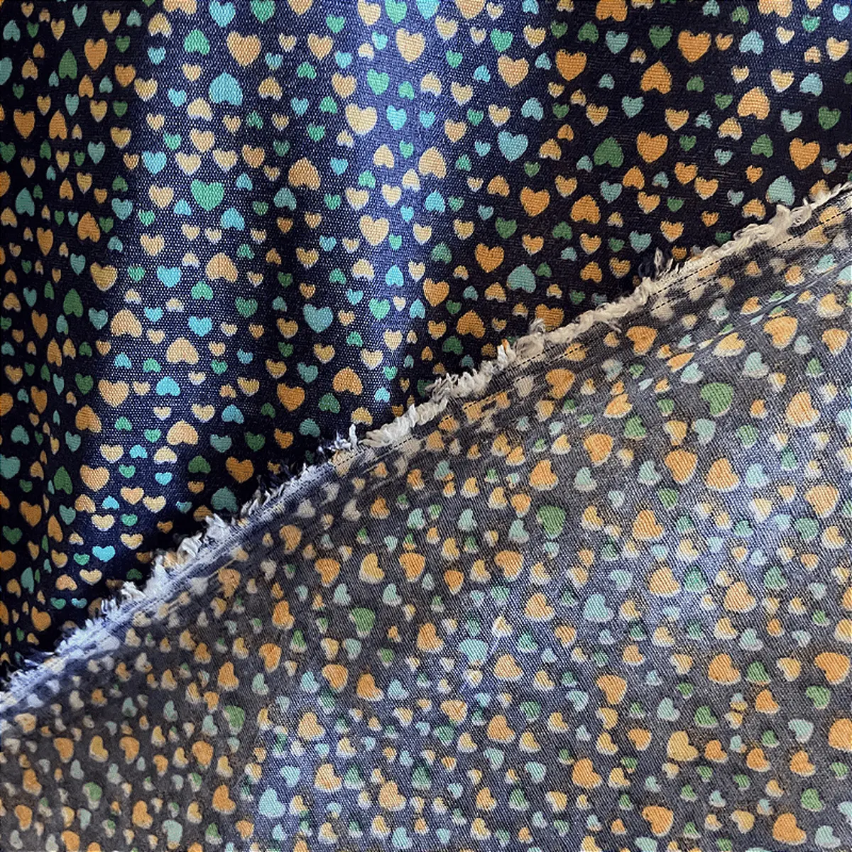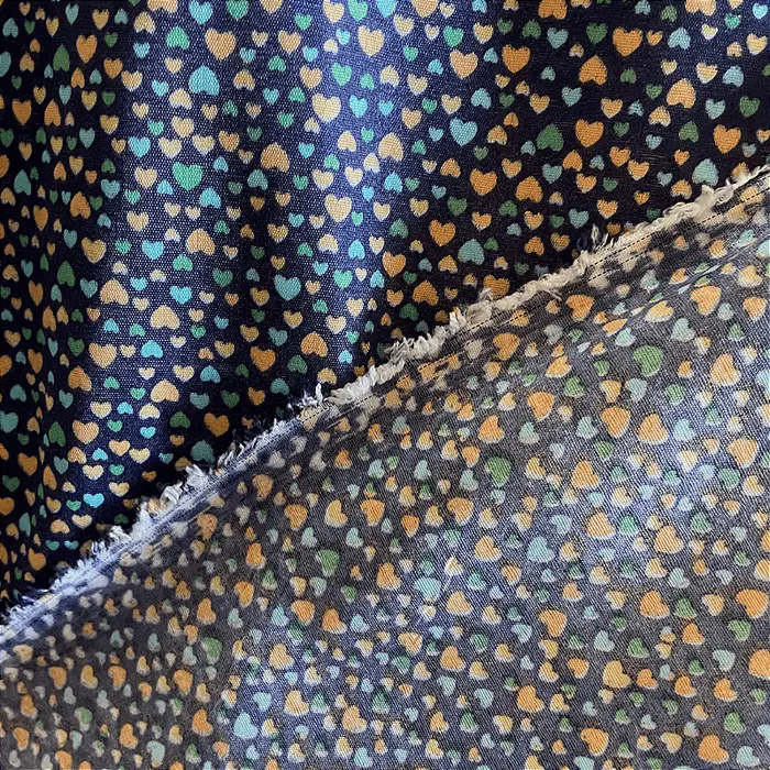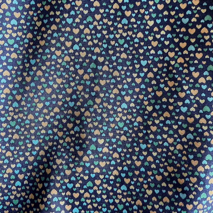 Tricoline Estampado Poliéster - Coração Fundo Azul Marinho - 1,5 -