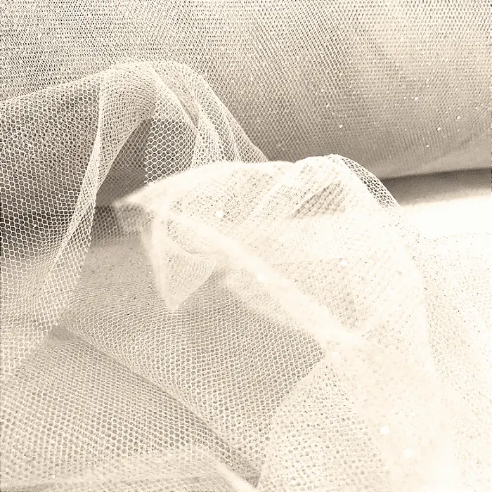 O Tule Glitter é um tecido de tramas finas e delicadas com superfíicie brilhante e transparente e ótimo caimento podendo ser utilizado em cima de outros tecidos ou de maneira individual. Podendo ser facilmente utilizado na confecção de véus de noiva, ballet, vestidos ou até mesmo em artesanato.
