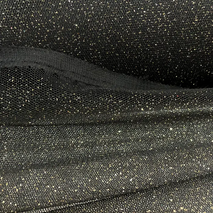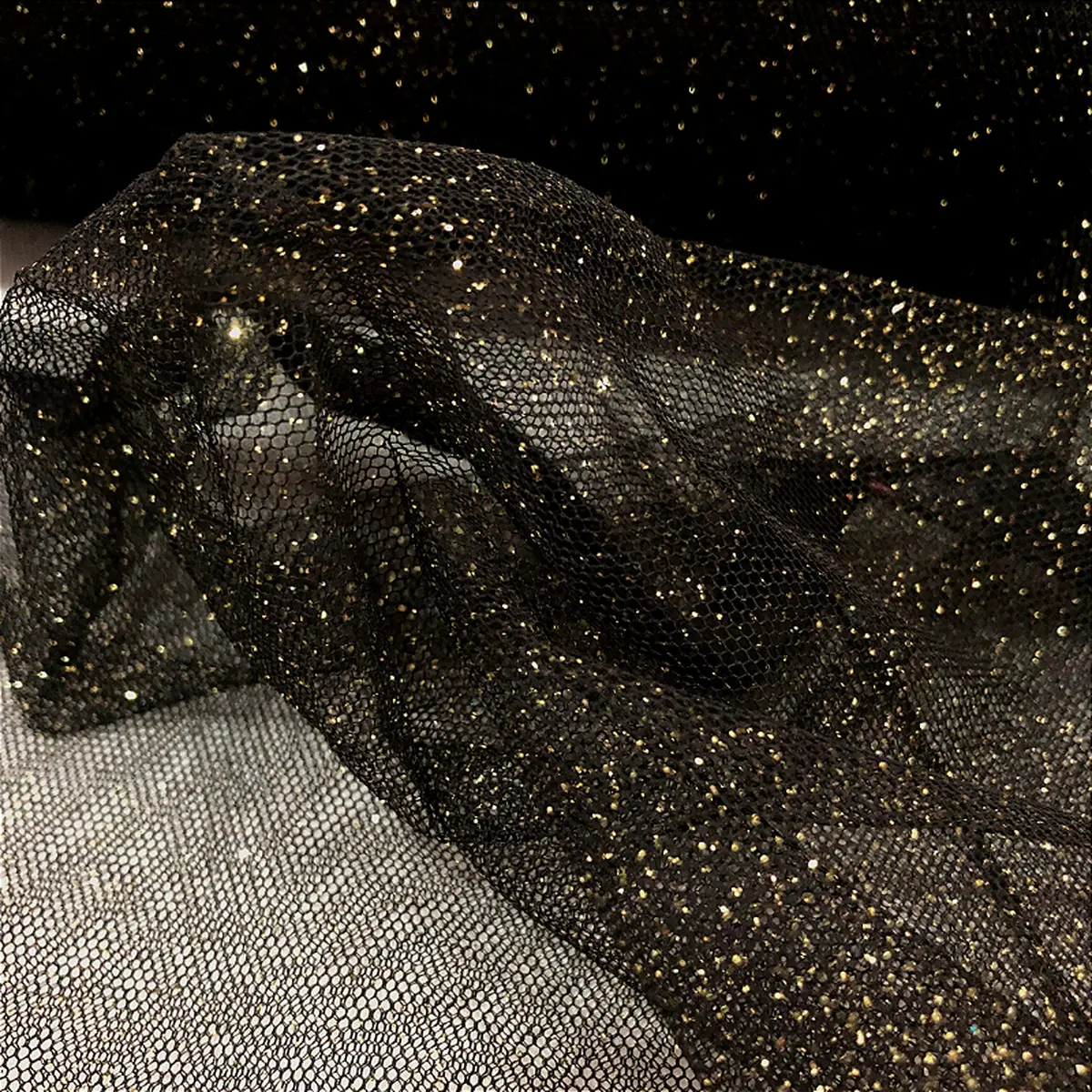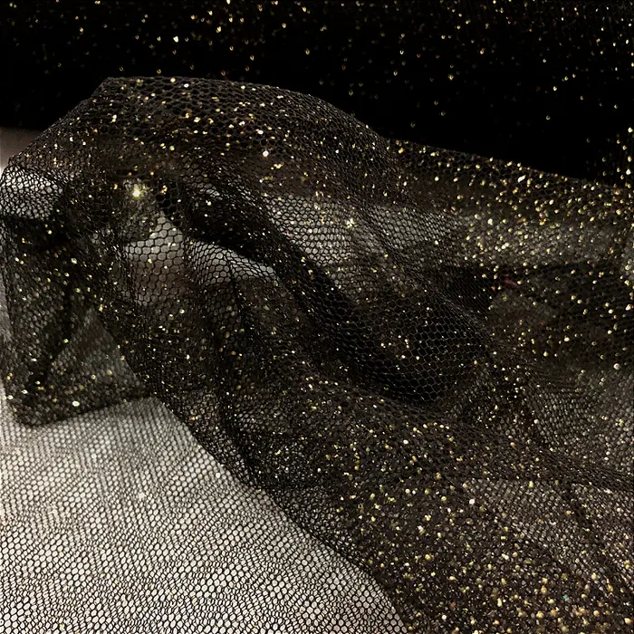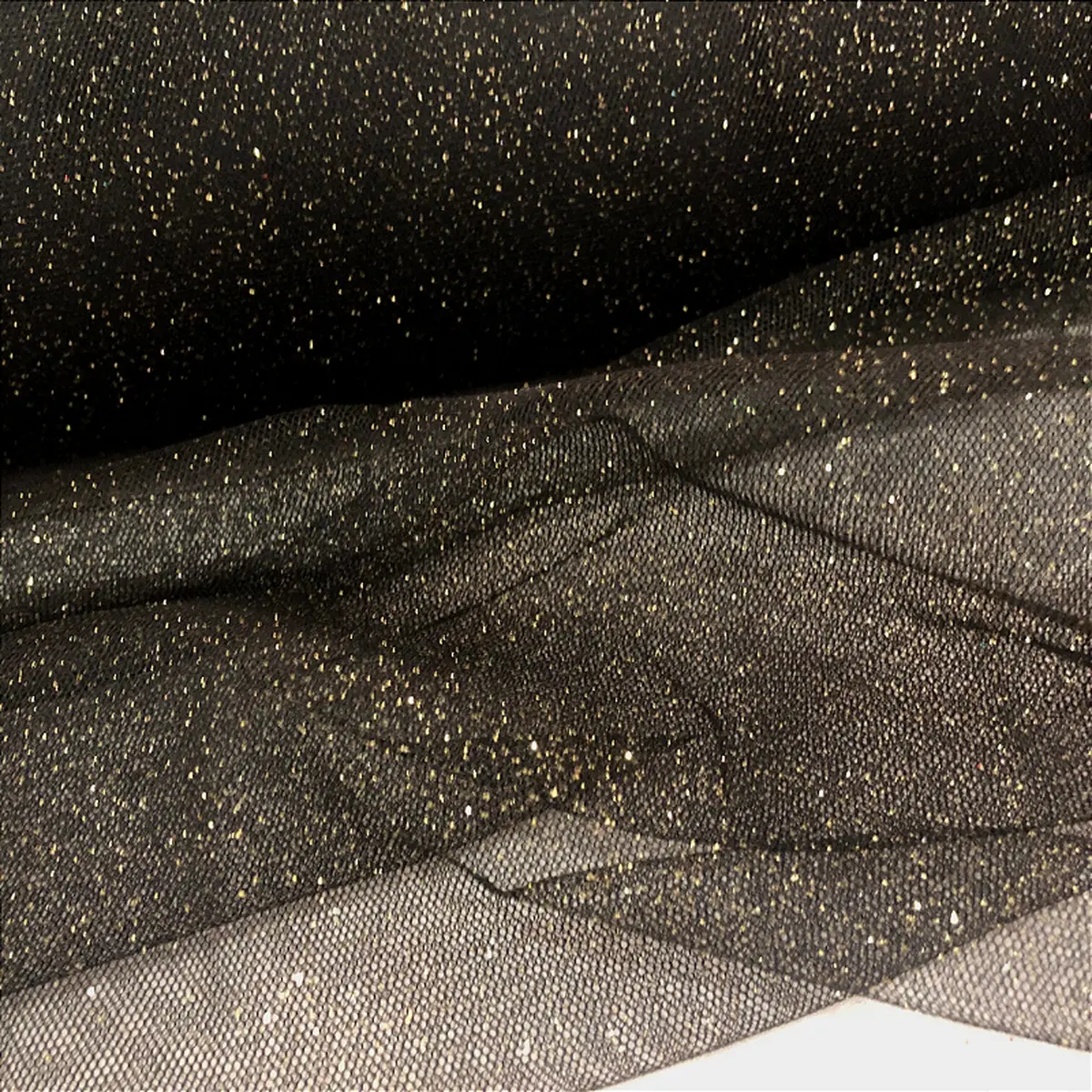 Tule Glitter - Preto Glitter Dourado - 1,47m de Largura -