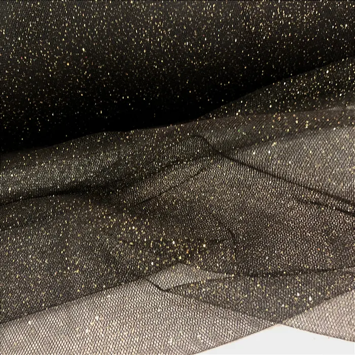 O Tule Glitter é um tecido de tramas finas e delicadas com superfície brilhante e transparente e ótimo caimento podendo ser utilizado em cima de outros tecidos ou de maneira individual.