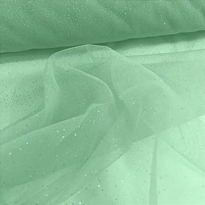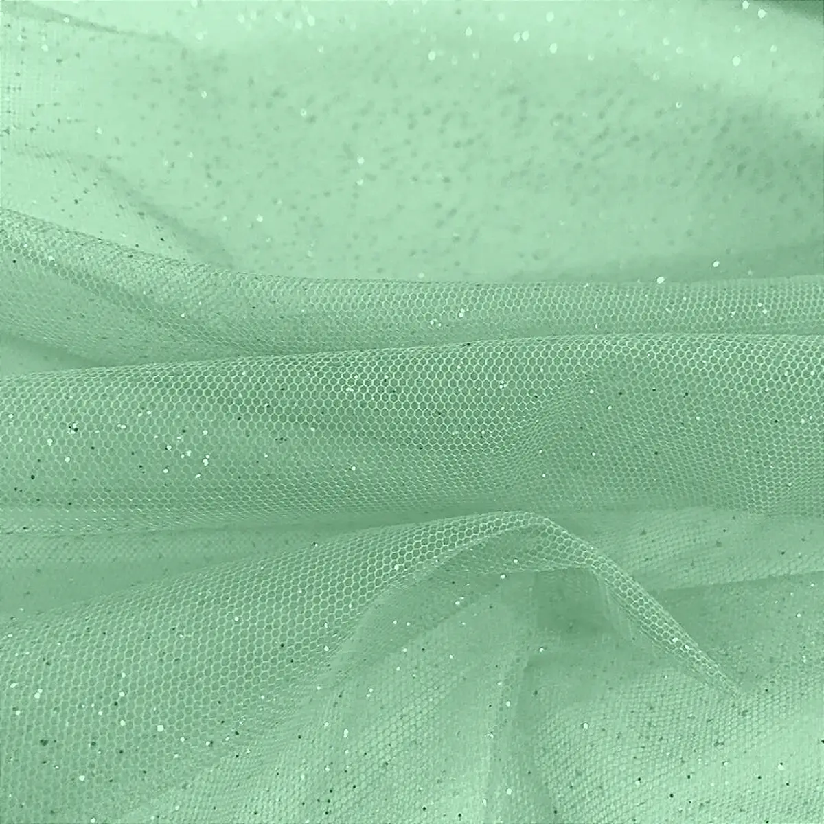Tule Glitter - Verde Menta - 1,47m de Largura -
