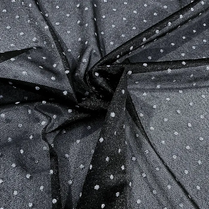 Tecido tule poá com brilho, perfeito para dar um toque de sofisticação e modernidade aos seus projetos!