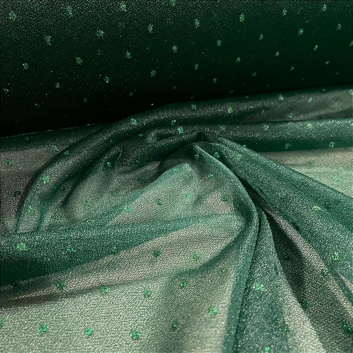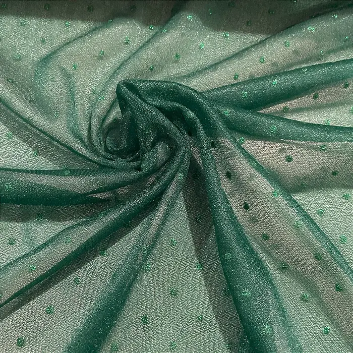 Tule Poá Brilhante - Verde Esmeralda - 1,50m de Largura -