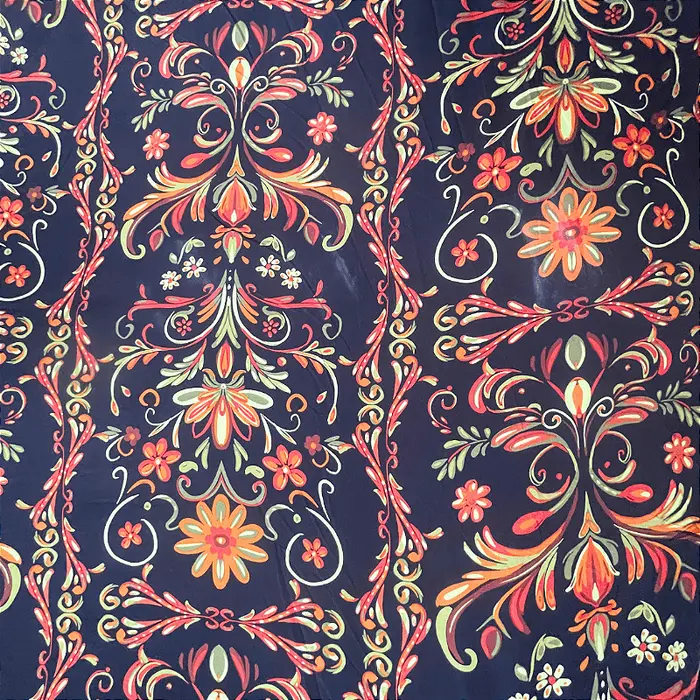 Crepe Estampado Havana - Arabesco Preto - 1,50m de Largura -