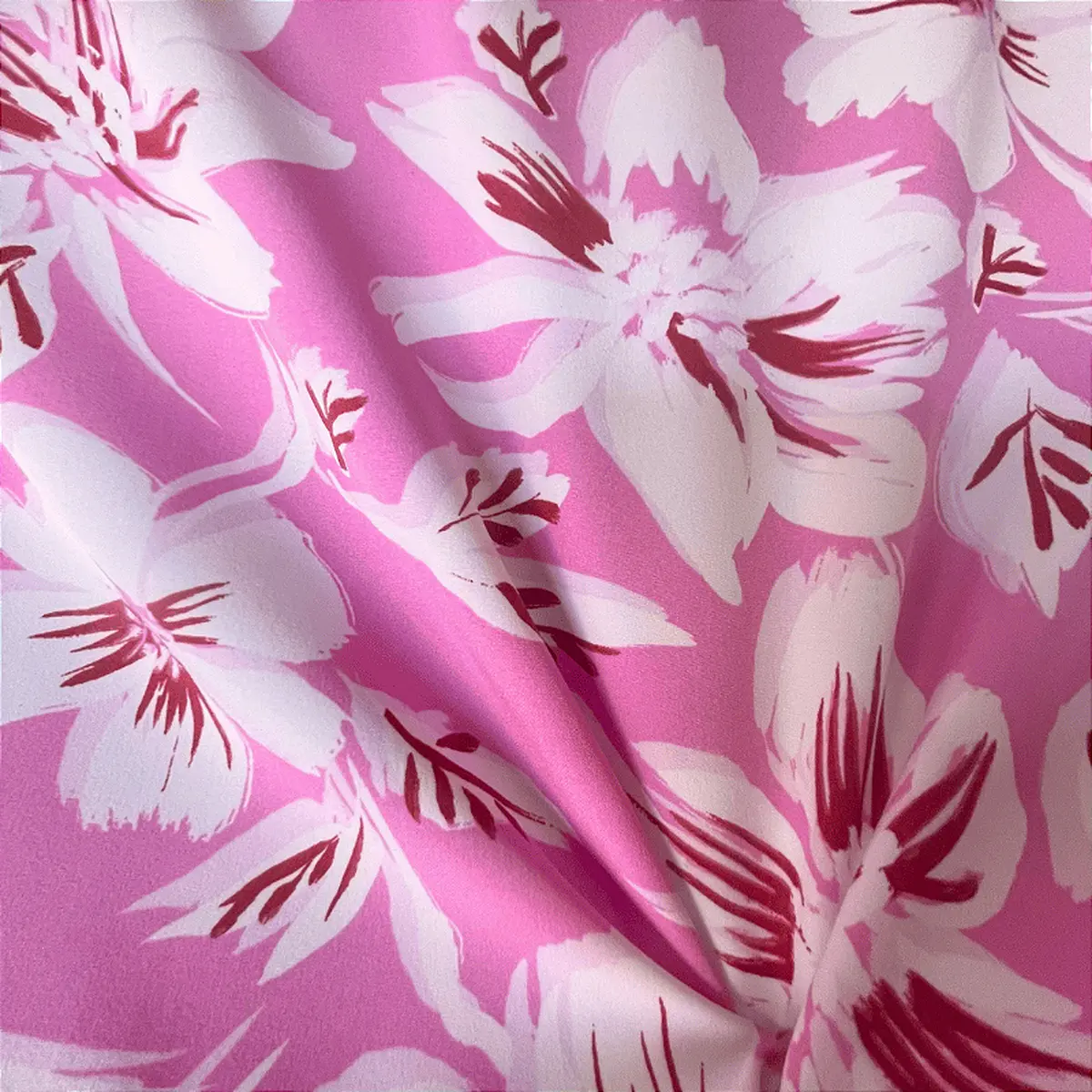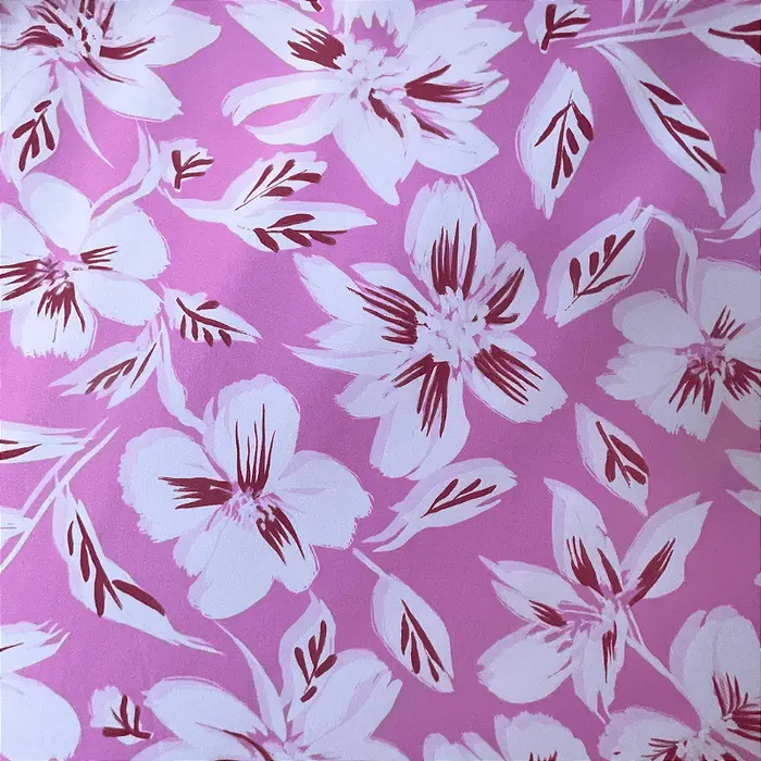 Crepe Estampado Havana - Floral Branco Fundo Rosa - 1,50m de Lar -