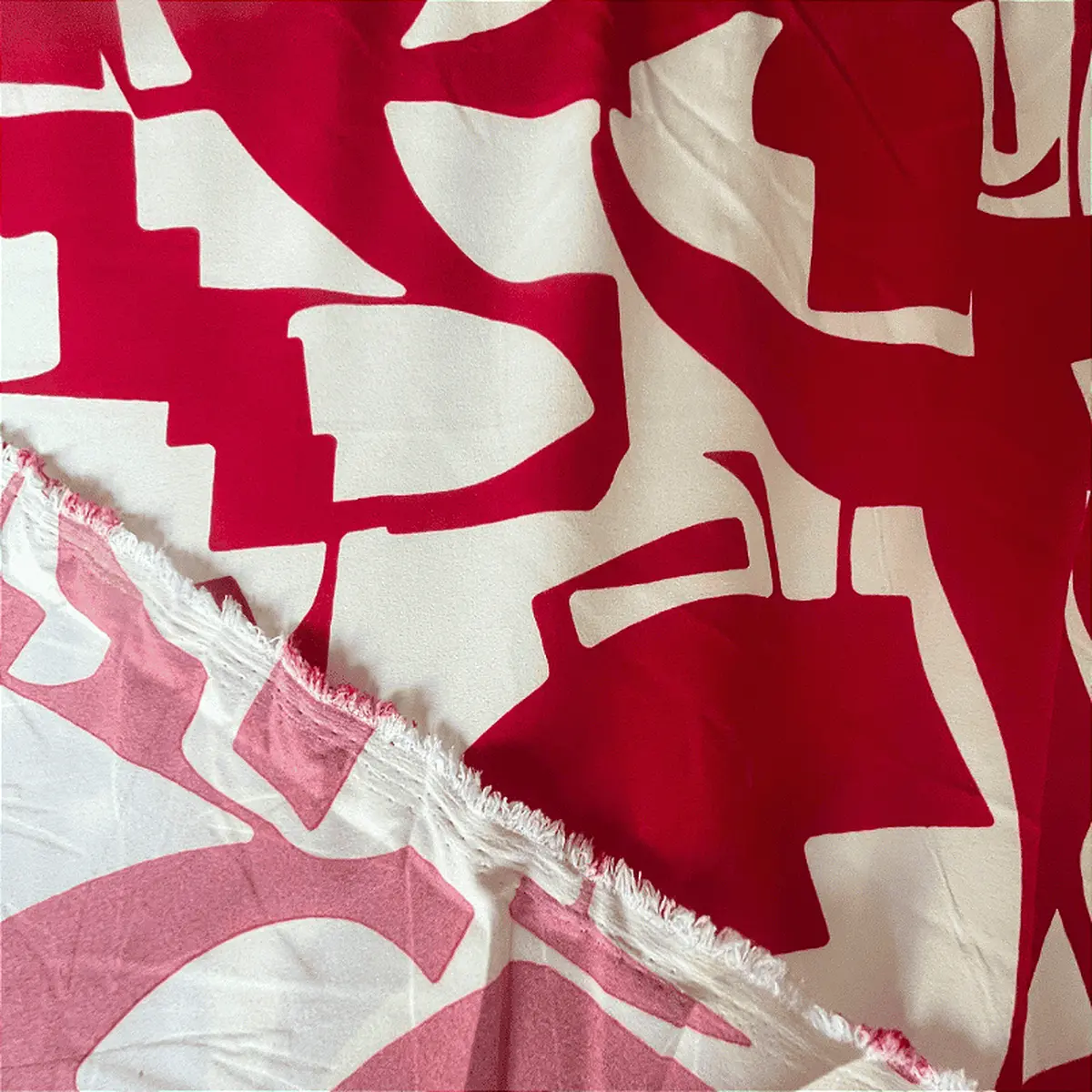 Crepe Estampado Havana - Geométrico Vermelho - 1,50m de Largura -