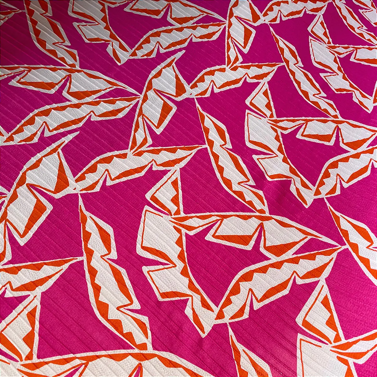 Crepe Marrocos Estampado - Folhagem Geométrica Rosa - 1,47m de L -