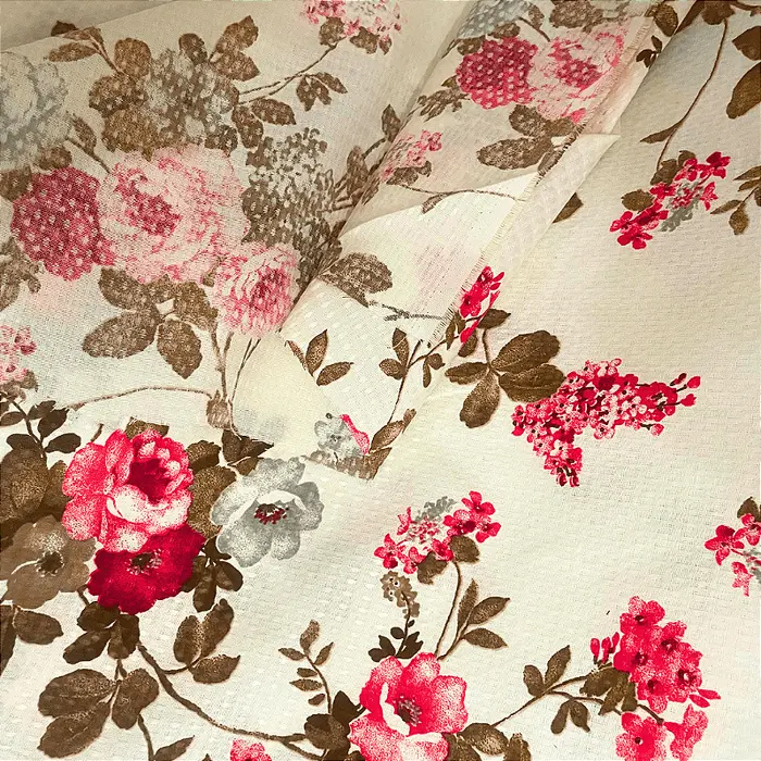 Gorgurinho - Ramagem Floral Rosa e Branco - 2,50m de Largura -