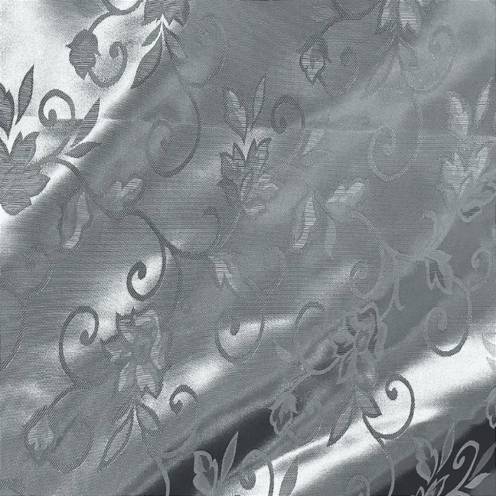 O Jacquard Satin é a escolha definitiva para quem deseja requinte nos detalhes. Diferente dos tecidos lisos comuns, ele possui desenhos em relevo formados pela própria trama (efeito Jacquard), que ganham vida sob a luz graças ao seu acabamento acetinado de brilho discreto. Com gramatura leve de 110 g/m², ele oferece um caimento fluido e gracioso, sendo a estrela principal na confecção de toalhas de mesa sofisticadas e cortinas que vestem o ambiente.