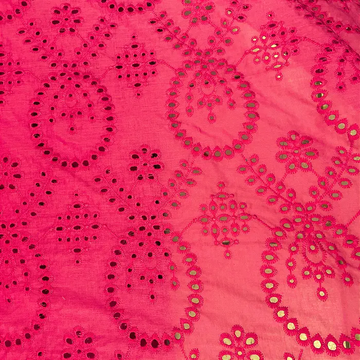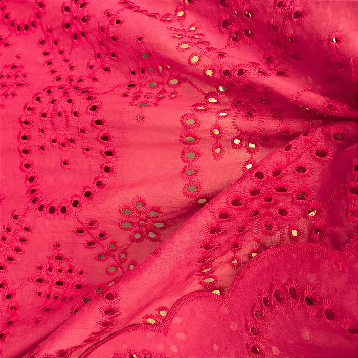 Laise Bordado 100% Algodão - Bolha Floral Pink - 1,40m de Largur -