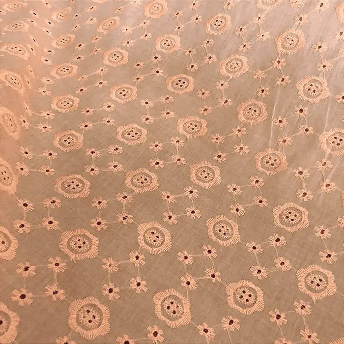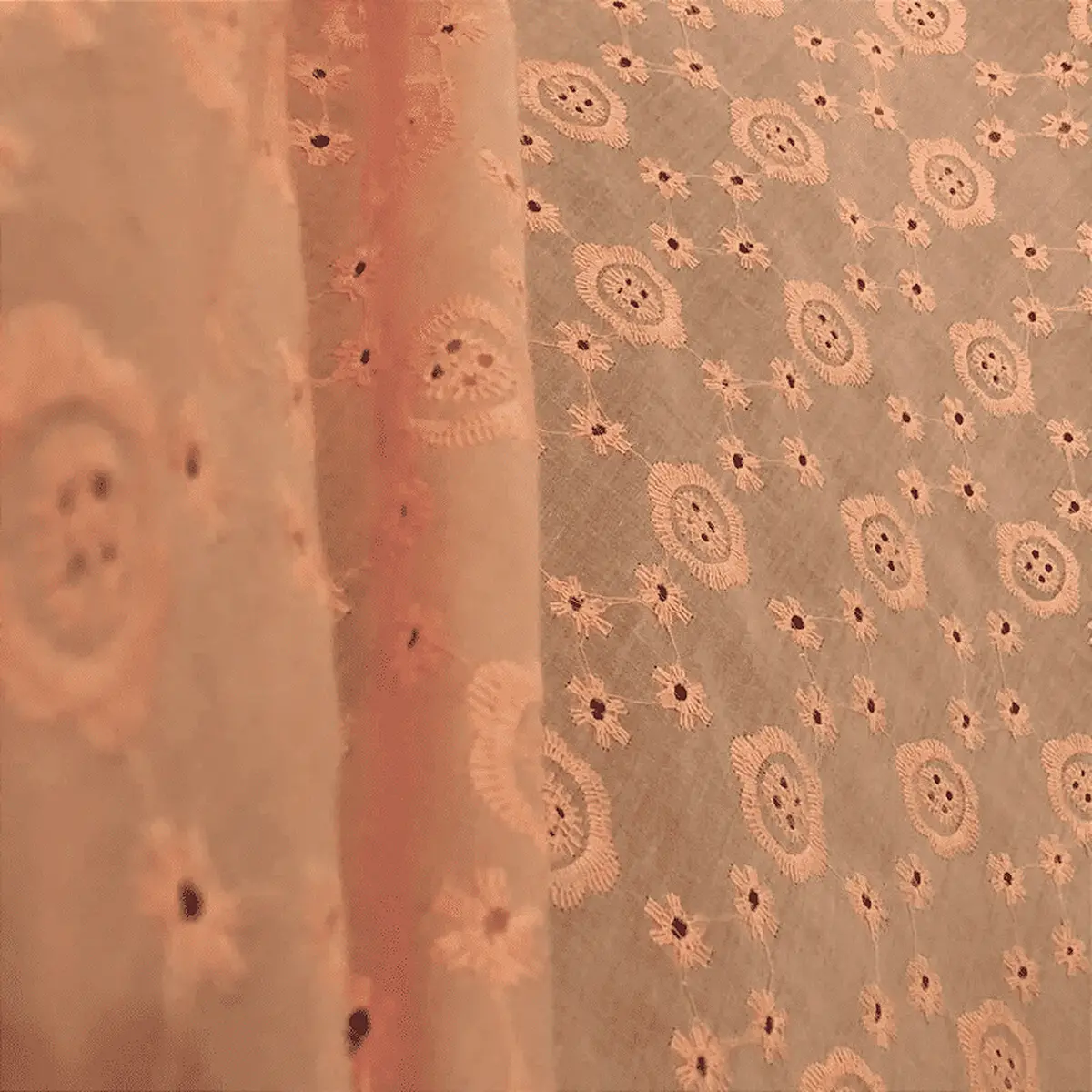 Laise Bordado 100% Algodão - Geométrica Salmão - 1,40m de Largur -