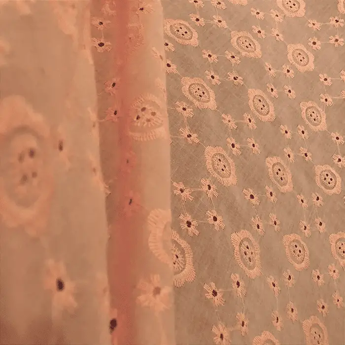 A Laise é um tecido 100% Algodão que possui como traço marcante sua superfície vazada e bordada