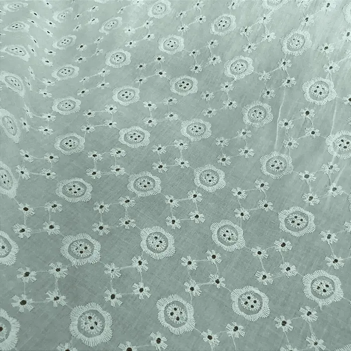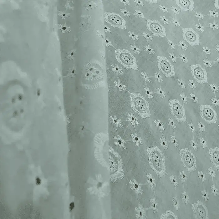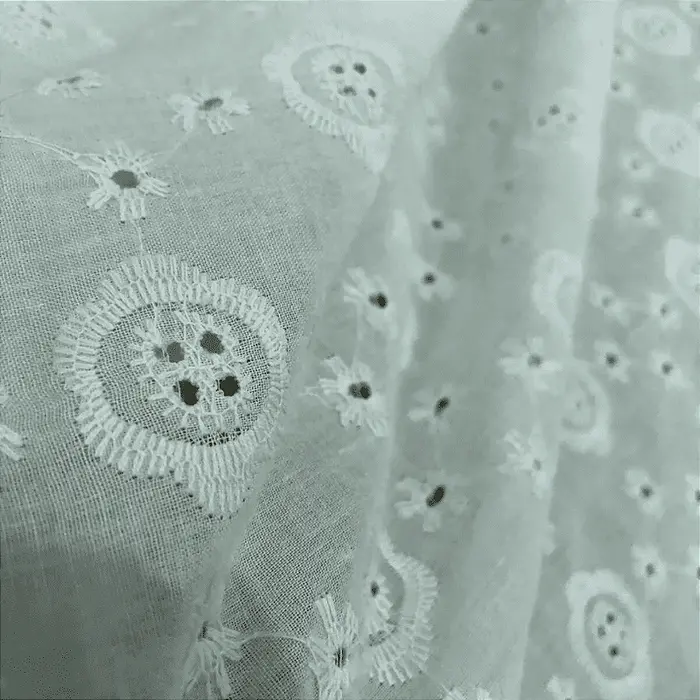 A Laise é um tecido 100% Algodão que possui como traço marcante sua superfície vazada e bordada