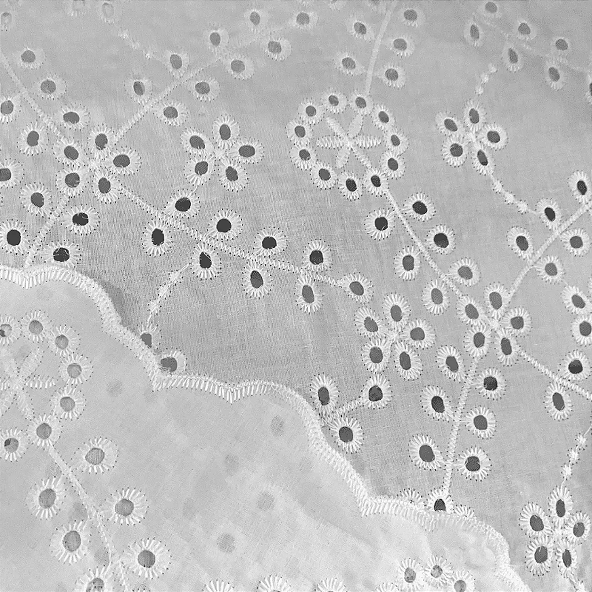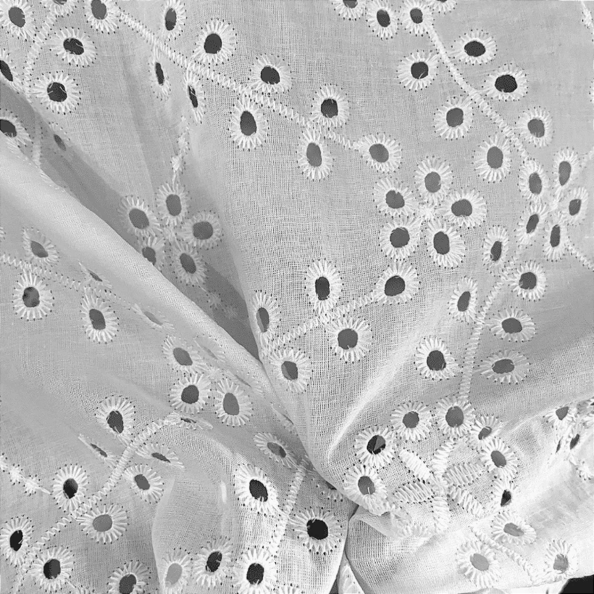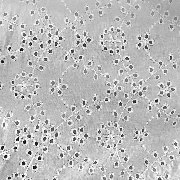 A Laise é um tecido 100% Algodão que possui como traço marcante sua superfície vazada e bordada