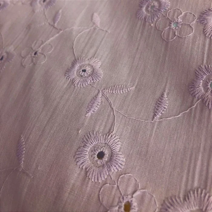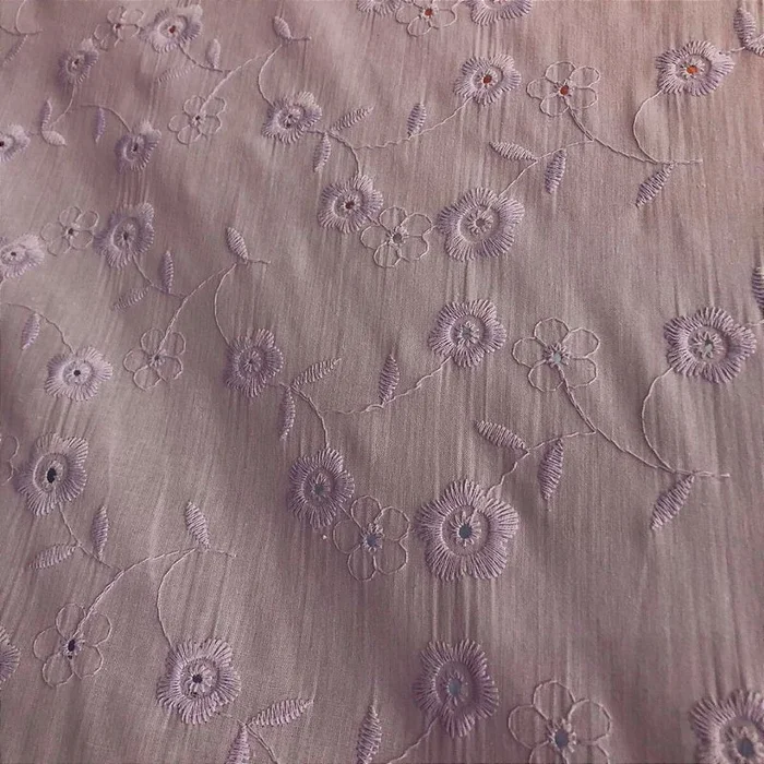Laise Bordado 100% Algodão - Ramado Floral Lilás Claro - 1,40m d -