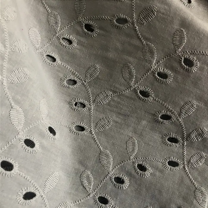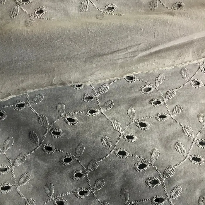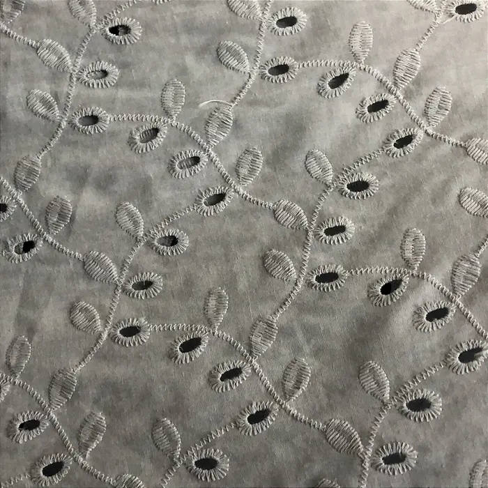 A Laise é um tecido 100% Algodão que possui como traço marcante sua superfície vazada e bordada