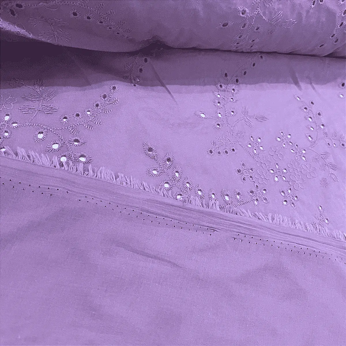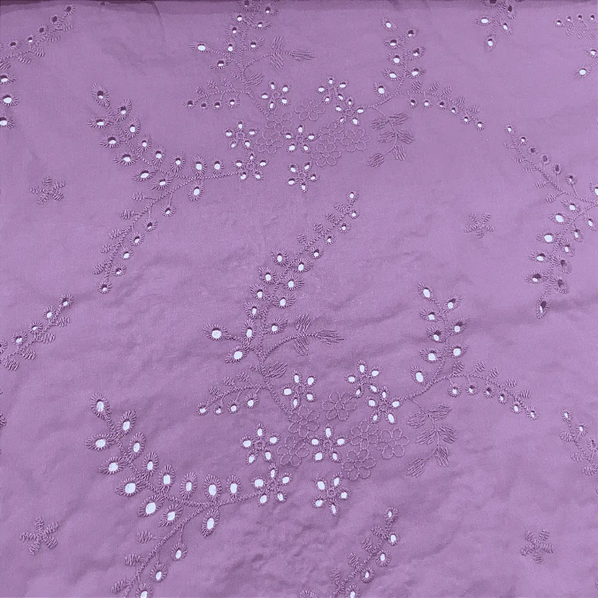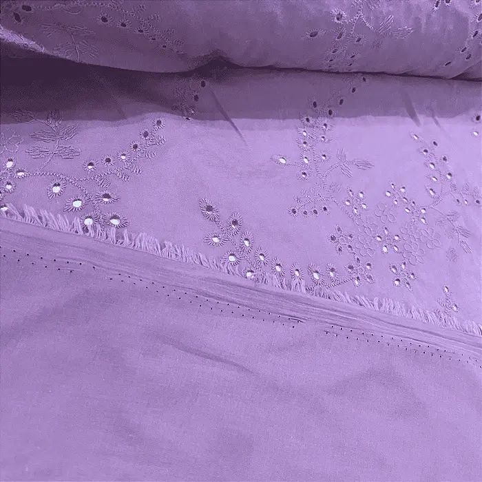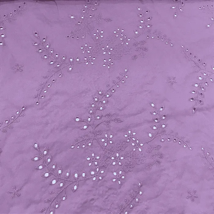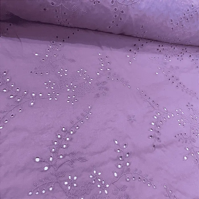 Laise Bordado 100% Algodão - Ramagem Lilás - 1,40m de Largura -