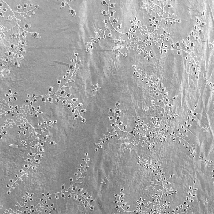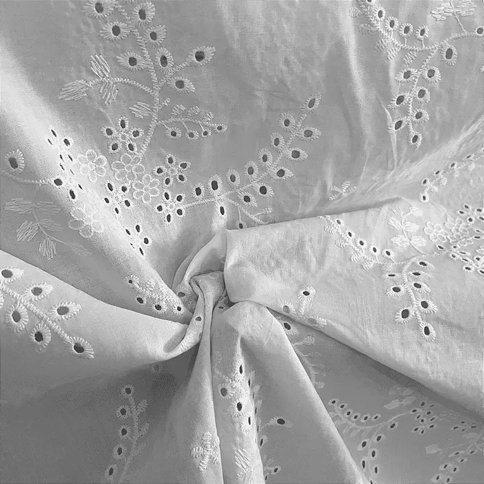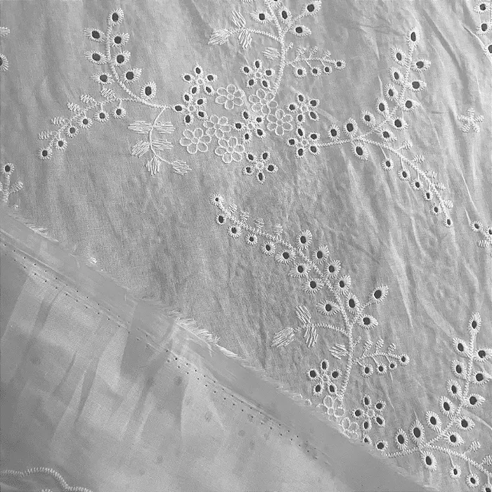 A Laise é um tecido 100% Algodão que possui como traço marcante sua superfície vazada e bordada