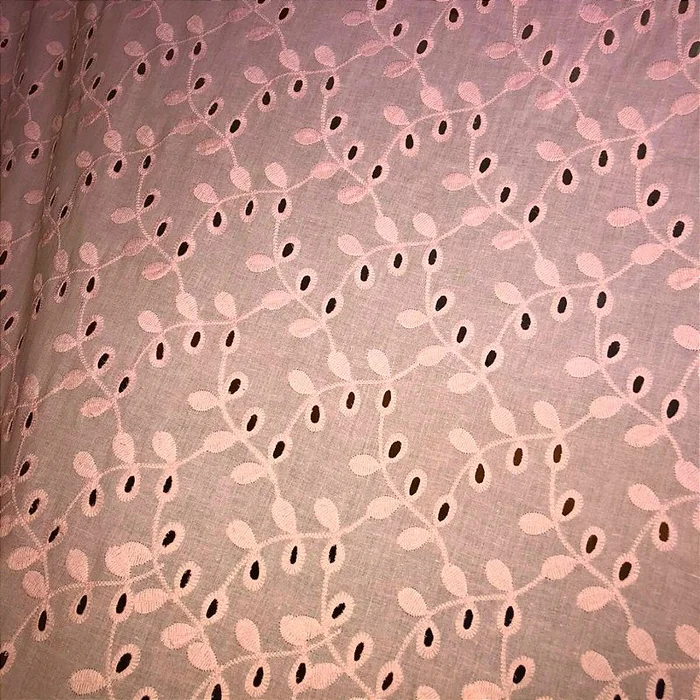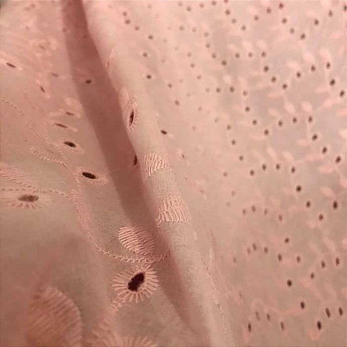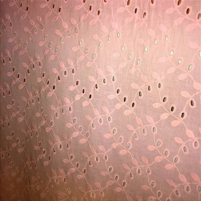 Laise Bordado 100% Algodão - Ramagem Rosa Bebê - 1,40m de Largur -