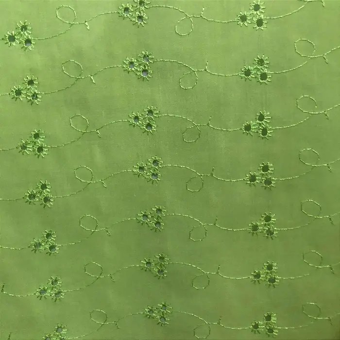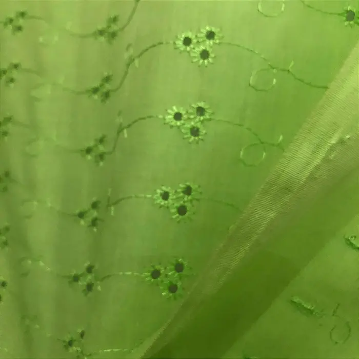 Laise Bordado 100% Poliéster - Verde Claro - 1,45m de Largura -