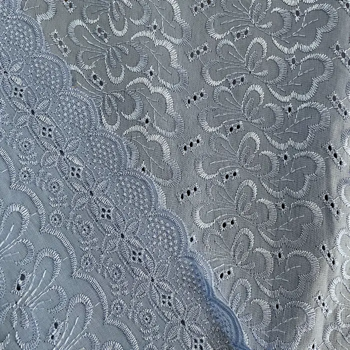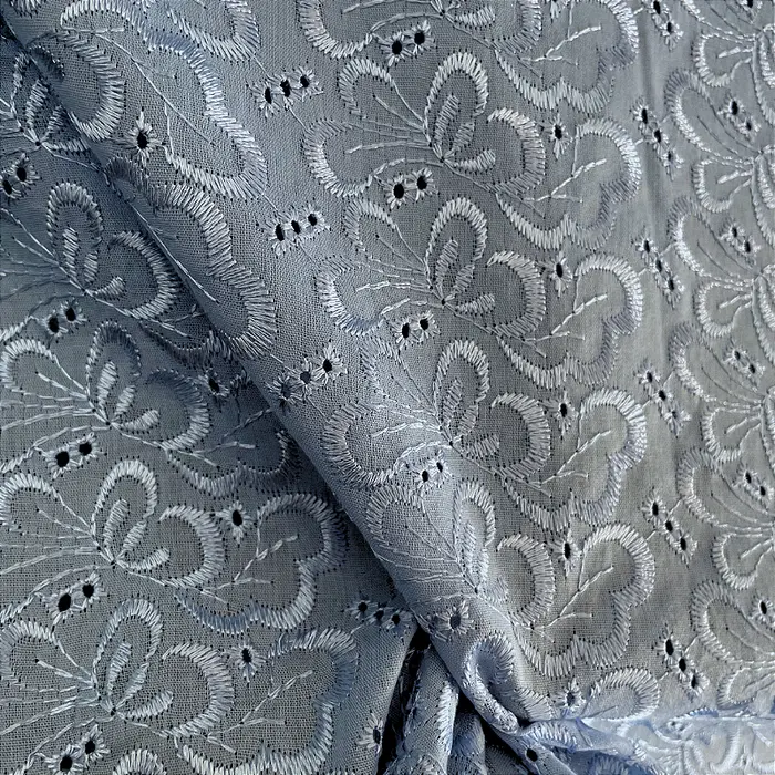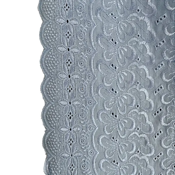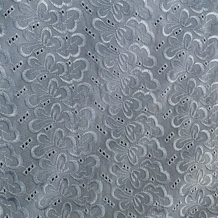 A Laise Bordado Austríaco é um tecido Misto de Algodão com Poliéster que possui como traço marcante sua superfície vazada e charmoso bordada em alto relevo com furinhos, apresenta toque suave e ótimo caimento
