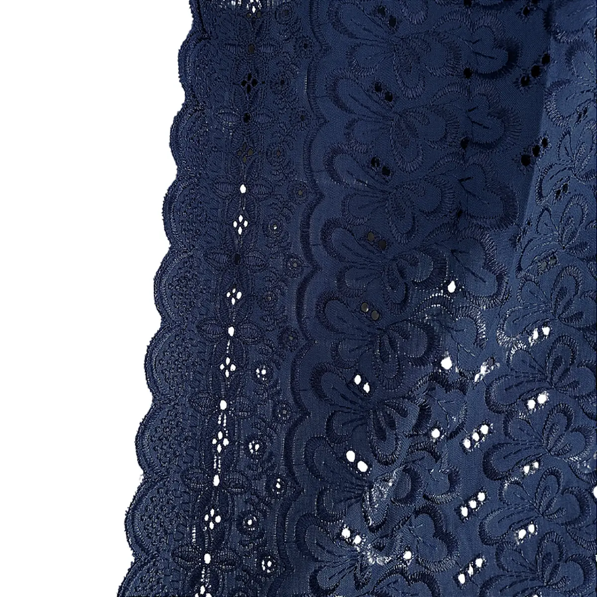 A Laise Bordado Austríaco é um tecido Misto de Algodão com Poliéster que possui como traço marcante sua superfície vazada e charmoso bordada em alto relevo com furinhos, apresenta toque suave e ótimo caimento