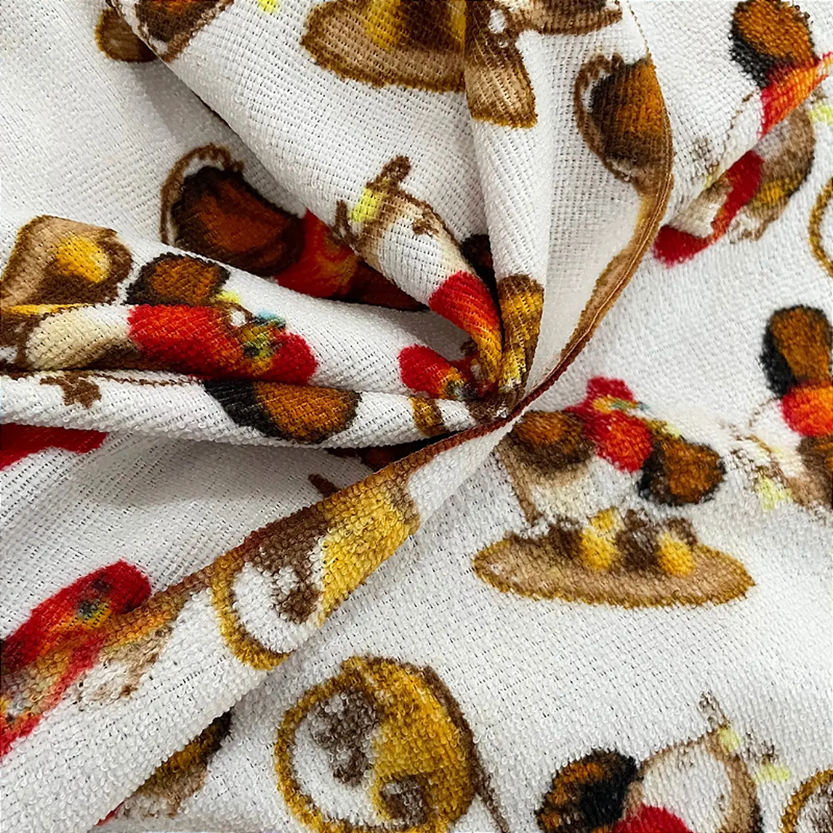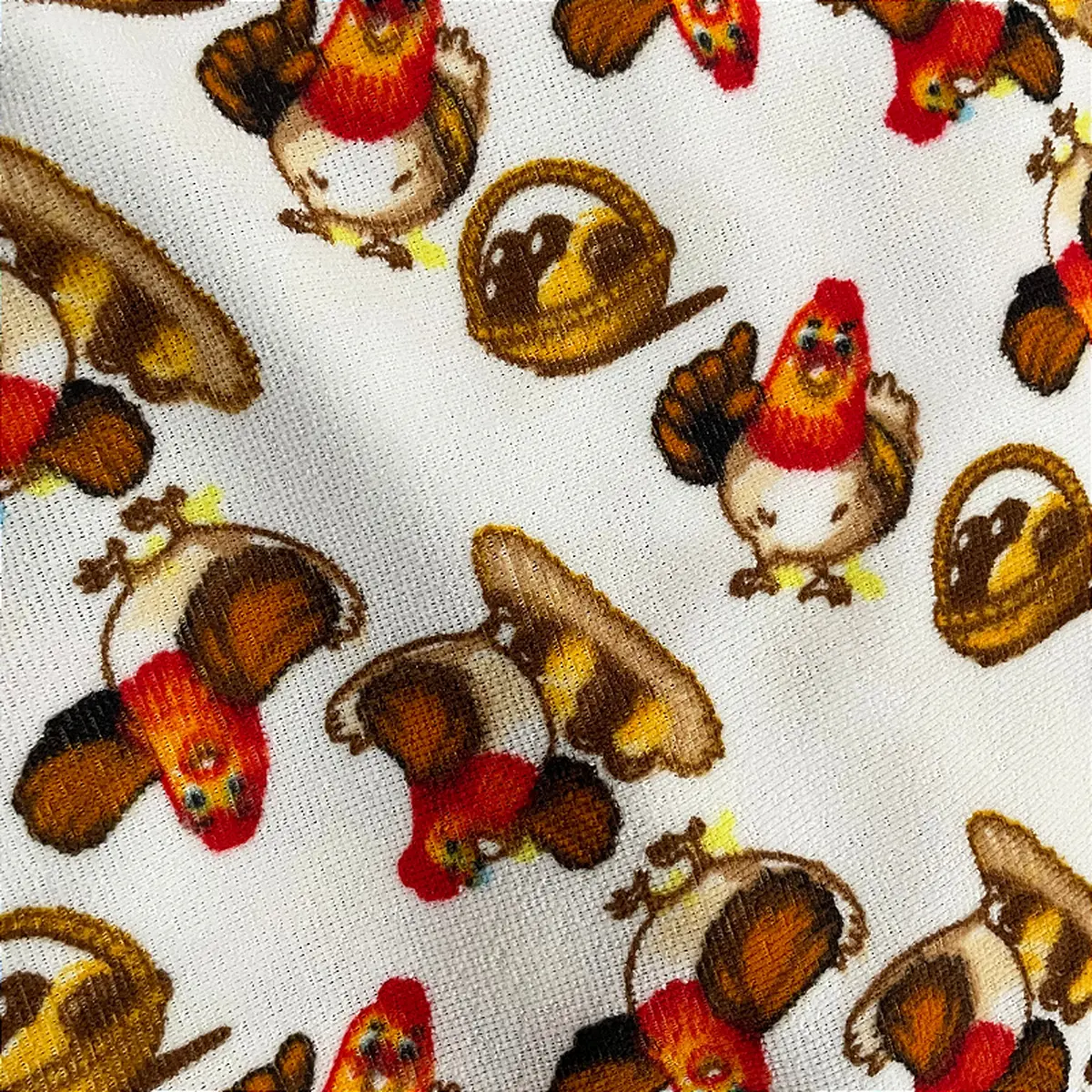 Atoalhado Estampado Felpudo - Galinhas - 1,47m de Largura -