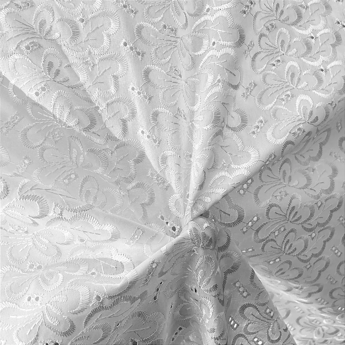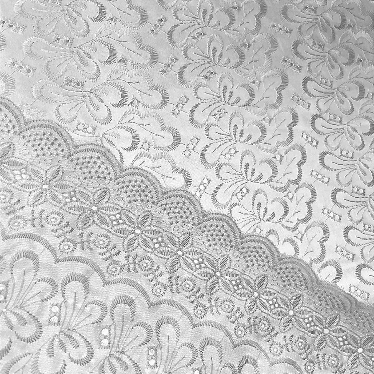 A Laise Bordado Austríaco é um tecido Misto de Algodão com Poliéster que possui como traço marcante sua superfície vazada e charmoso bordada em alto relevo com furinhos, apresenta toque suave e ótimo caimento