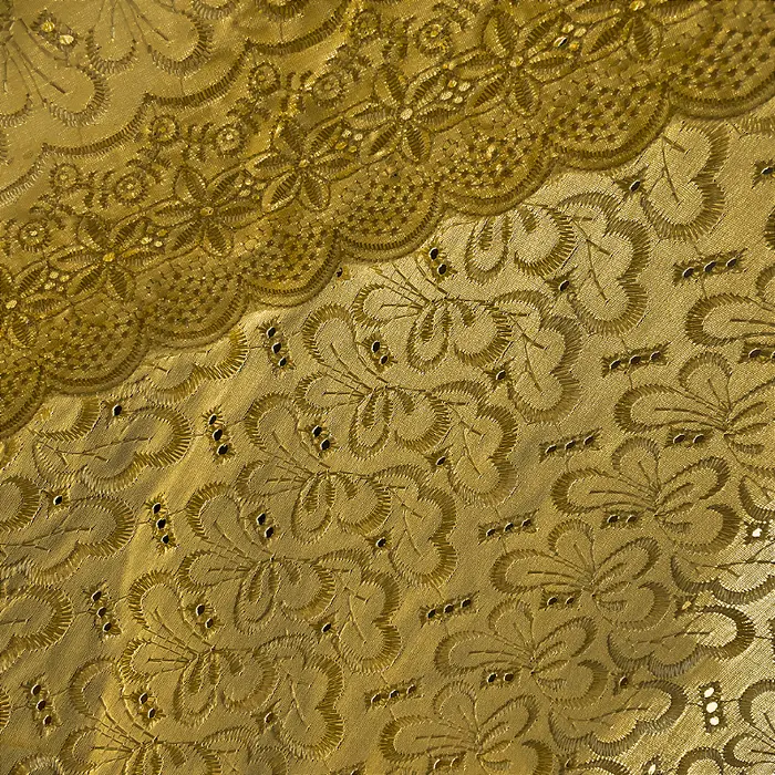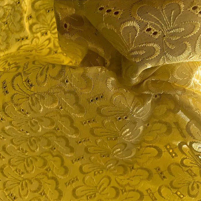 A Laise Bordado Austríaco é um tecido Misto de Algodão com Poliéster que possui como traço marcante sua superfície vazada e charmoso bordada em alto relevo com furinhos, apresenta toque suave e ótimo caimento