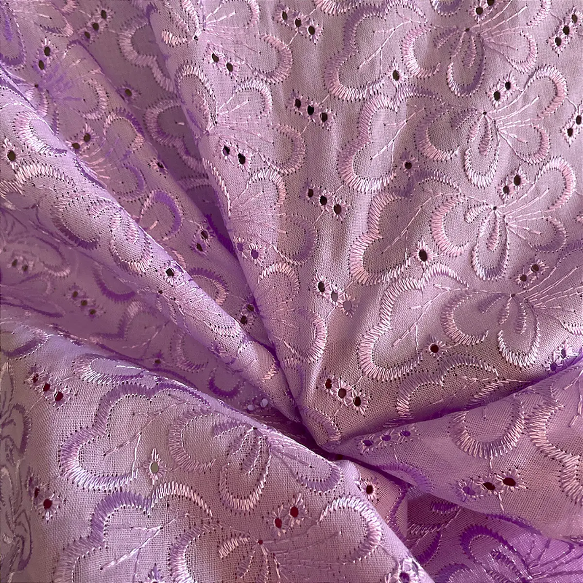 Laise Bordado Austríaco - Borboleta Floral Lilás - 1,30m de Larg -