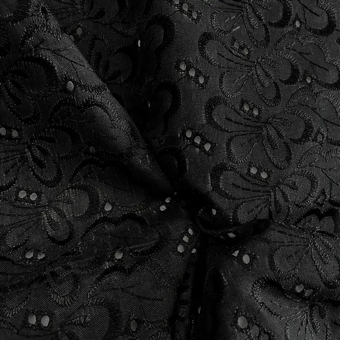 A Laise Bordado Austríaco é um tecido Misto de Algodão com Poliéster que possui como traço marcante sua superfície vazada e charmoso bordada em alto relevo com furinhos, apresenta toque suave e ótimo caimento